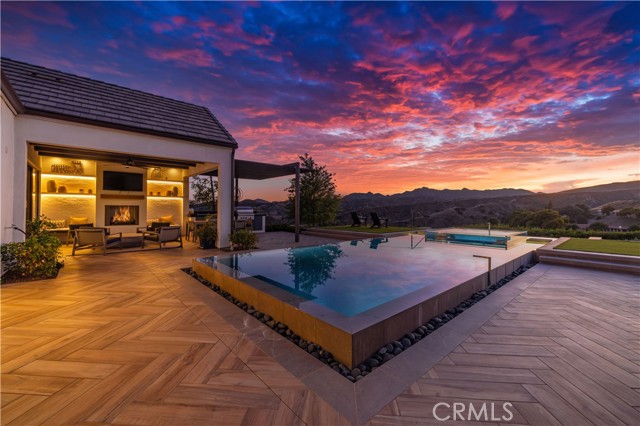 Welcome to 12401 Ridge Line, Luxury Single Story Home located in the prestigious and gated community of Porter Ranch! This former Toll Brothers model home offers the pinnacle of luxury living with unobstructed canyon views on a stunning lot, making it a true standout in the neighborhood. Enjoy one of the best and exclusive sunset views from the comfort of your own backyard, where you'll find a sparkling pool & spa, mountain views, BBQ area, and meticulously designed landscaping that exudes elegance. The sale of this home includes all the furniture, adding an extra layer of convenience and value! Step inside to discover the chef's kitchen featuring stainless steel appliances and a spacious walk-in pantry. Every corner of this home showcases upgraded finishes and impeccable detail, ensuring an unforgettable experience for both residents and guests. With ample living areas, this home offers functional office spaces, stunning hard flooring, and aesthetically pleasing bathrooms throughout. The master bath is a true sanctuary, boasting a soaking tub, an exquisitely designed and well lit walk-in closet, and a spacious glass standing shower. Additionally, the outdoor area of the master suite features a relaxing outdoor soaking tub in a privately closed area, adding a touch of tranquility to enjoy nature. Indulge in a lifestyle of opulence with scenic walking trails, breathtaking views, and an abundance of space. The backyard is highlighted by a captivating fireplace, epitomizing the quintessential California luxury lifestyle that dreams are made of. Take the first step towards your dream lifestyle today!