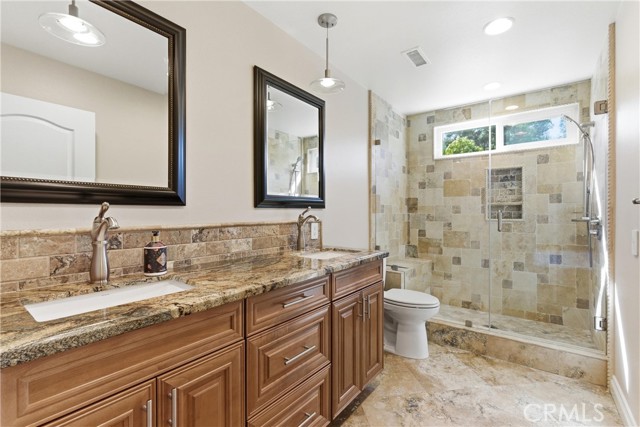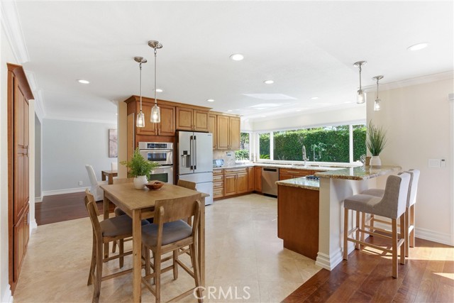 Welcome to your new home! This exceptional 5-bedroom residence in the highly sought-after Madrid Del Lago community, where style, space, and location come together beautifully. Thoughtfully remodeled throughout, this home showcases rich hardwood flooring and elegant travertine, creating a warm yet sophisticated atmosphere. At the heart of the home is a beautifully updated, open-concept kitchen that seamlessly connects to the inviting family room complete with a cozy fireplace and direct access to the backyard. Perfect for effortless indoor-outdoor living. Step outside to your private entertainer’s paradise. The expansive backyard features a remodeled patio with a built-in island, stainless steel BBQ, and refrigerator, ideal for hosting gatherings or enjoying relaxed evenings at home. There’s plenty of room for kids, pets, and play. Designed with versatility in mind, the ideal floor plan offers four spacious bedrooms upstairs, including a luxurious primary suite with a sitting area, abundant closet space, and a serene, spa-inspired bathroom. Downstairs, a private bedroom with a built-in desk and a sliding door to the patio and adjacent three-quarter bath is perfect for a home office or a guest room. Additional highlights include a formal living room and separate dining room for larger gatherings, fresh interior paint, abundant natural light, generous storage, and a three-car-attached garage with workbench. Modern conveniences such as central A/C, surround sound, and Ethernet wiring in select rooms, add to the home’s appeal. Enjoy close proximity to shopping, dining, freeways, parks, and recreation, along with access to Lake Mission Viejo amenities including concerts, boating, beaches, and more (membership details available through the city). The nearby Wilderness Glen walking trails and top-rated Saddleback Valley Unified schools complete the lifestyle package. This is a rare opportunity to own a turnkey home in a highly sought-after location. Don’t miss out on this one! See it for yourself!