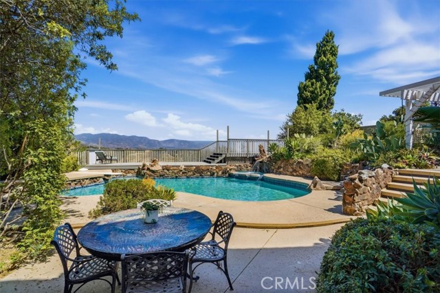 VIEW! VIEW! VIEW! Experience truly breathtaking valley and mountain vistas from this sensational Porter Ranch pool home, perfectly situated north of Rinaldi in a highly desirable neighborhood. A light-filled residence offering over 2,400 sq. ft. of comfortable living space on an expansive 16,700+ sq. ft. lot, where sweeping canyon and city views take center stage from nearly every angle. Located within the sought-after boundaries of Castlebay Lane Elementary and Granada Hills Charter High, and just minutes from parks, hiking trails, shopping, and convenient freeway access, this home blends lifestyle, location, and scenery seamlessly. Step inside to soaring ceilings and expansive windows in the living room, flooding the space with natural light while framing the stunning views. Custom molding details add a touch of elegance, while the formal dining room with a charming bay window creates an inviting space for entertaining. The adjacent chef’s kitchen features updated cabinetry, quality built-in stainless-steel appliances, and a cozy breakfast nook where you can start your day overlooking the views. The warm and welcoming family room offers crown molding, a fireplace, and sliding glass doors that open to the backyard—creating effortless indoor-outdoor living. Upstairs, the spacious primary suite is a true retreat, complete with cathedral ceilings, a private balcony showcasing mountain views, dual walk-in closets, and an en suite bath with dual sinks. Additional bedrooms are generously sized, with a convenient bedroom and bathroom located on the main level—ideal for guests or multi-generational living. The backyard is an entertainer’s dream, designed to maximize the home’s incredible setting. Enjoy multiple seating areas, a view deck, and a cascading waterfall that flows into the sparkling pool and spa - all set against a dramatic backdrop of valley and mountain vistas. Homes with views like this are rare. Don’t miss the opportunity to make it yours.