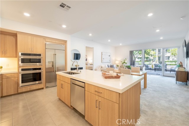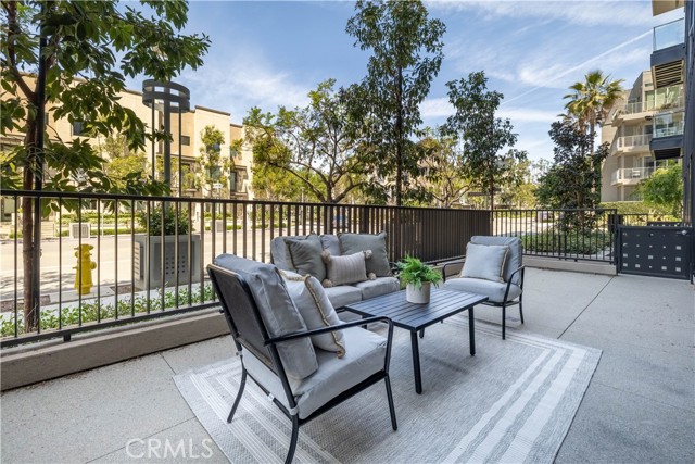 This spacious 3-bedroom, 3-bathroom unit offers the rare advantage of first-floor living, complete with an oversized private patio that extends your living space outdoors — ideal for effortless entertaining, al fresco dining, or quiet evenings under the stars. Direct street access adds a layer of everyday convenience rarely found in condominium living. The bright, open-concept floor plan seamlessly connects the living and dining areas, creating an inviting atmosphere bathed in natural light from expansive windows with custom treatments. The chef-inspired kitchen features top-of-the-line appliances and a generous center island, perfect for intimate gatherings or culinary creativity. Recessed lighting throughout adds a warm, polished ambiance. Retreat to the spacious primary suite, where the spa-inspired en-suite bath awaits with dual vanities, a soaking tub, oversized walk-in shower, and a generous walk-in closet. The second bedroom enjoys its own private en-suite, while the elegantly appointed third bathroom ensures effortless comfort for guests. An in-unit laundry closet with full-size washer and dryer completes this thoughtfully curated home. Beyond your front door, an extraordinary amenity package awaits — two state-of-the-art fitness centers, two resort-style pools, a spa, pickleball and basketball courts, an 8,000-square-foot clubhouse with a commercial kitchen, yoga studio, luxury BBQ pavilions, outdoor workspaces, cabanas, EV charging stations, and gated dog parks. An additional private gym and conference room within the building provide exclusive convenience for residents. Perfectly positioned on the coveted Irvine-Newport Beach border, this home places you minutes from John Wayne Airport, world-class shopping, fine dining, and vibrant entertainment. A planned pedestrian bridge will offer direct walkable access to the surrounding retail and dining scene — an exciting addition to an already exceptional location. Water and trash included. This is turnkey, elevated living at its finest.