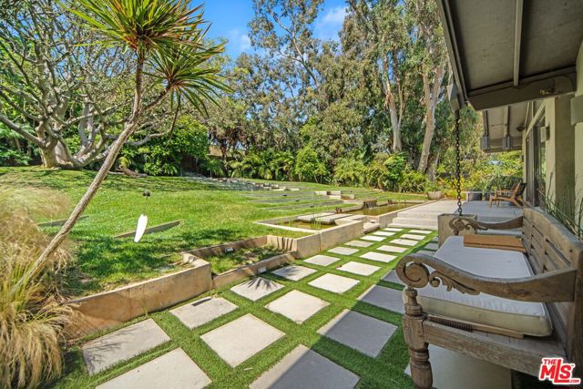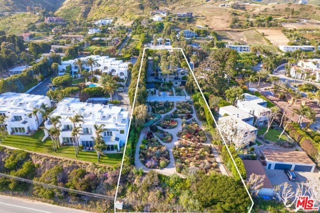 Set on a bluff above Broad Beach, this Balinese-inspired compound spans nearly one usable acre, offering sweeping ocean views, resort-style grounds, a pool and spa, detached guest house, and a true multi-structure layout. Tucked behind gates and mature hedging, the property unfolds as a private retreat. A custom Indonesian entry leads into a tranquil courtyard with a terraced lawn, flowing water feature, and reflection pool - setting a calm, grounded tone from the start. Inside, light-filled spaces feature bamboo floors, exposed beams, warm wood accents, and vaulted ceilings. The main living areas flow seamlessly into the dining and family room, all oriented toward the coastline. While the property is well-maintained and move-in ready, it offers an opportunity for thoughtful updates or personalization over time. The kitchen sits at the center of the home, featuring a large island, updated appliances, and direct access to a wide wood sundeck an ideal setting for gatherings both large and small. The entire upper level is dedicated to the primary suite, complete with a fireplace, ocean views, walk-in closet, and a spa-like bath with a steam shower and soaking tub positioned toward the horizon. On the main level, three guest bedrooms plus an office provide flexibility without compromising privacy. The grounds are idyllic, featuring a 60-foot heated pool and spa, fire pit, and meticulously landscaped gardens with mature fruit and citrus trees throughout. A detached one-bedroom, one-bath guest house with its own private deck sits apart from the main residence, while a separate media/game room and pool house includes a lounge, powder room, and recording studio. Additional features include smart home integration, DoorBird entry, a two-car garage, and ample driveway parking. Just moments from Broad Beach and Trancas Country Market, this is a rare opportunity to own a private compound with scale, views, and upside in Western Malibu.