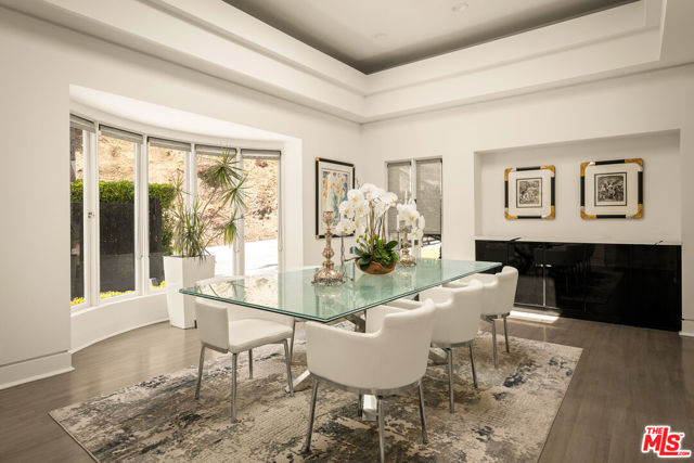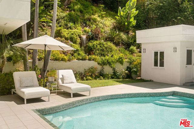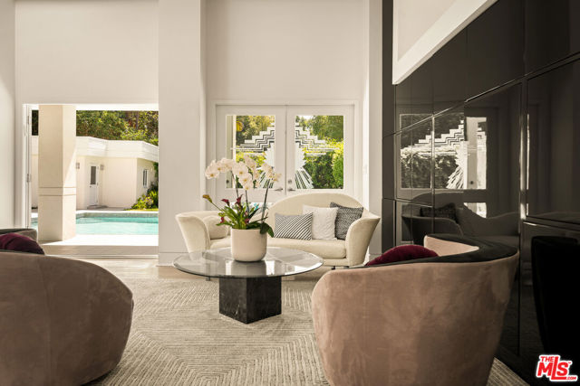 BEVERLY HILLS PROPER. Completely reimagined in 2026 and privately tucked behind tall hedges and gates on one of the most desirable streets in Beverly Hills, this Art Deco estate offers exceptional scale and privacy. Originally designed and built by renowned Hollywood couture designer Dina Barel, the home reflects timeless design and thoughtful attention to detail throughout. Set on over half an acre of landscaped grounds, the property blends classic architecture with a layout that feels functional and inviting. High ceilings, skylights, and French doors fill the home with natural light, while quality finishes add warmth and polish. The main level is ideal for entertaining, featuring a well-appointed kitchen with high-end appliances, custom cabinetry, and a large island that opens to the dining area and wet bar, all with direct access to the backyard. Outside, a pool and spa, natural waterfall, mature palms, and multiple seating areas create a private setting perfect for both relaxing and hosting. Upstairs, the primary suite includes a fireplace, dual dressing areas, and spacious bathrooms with a soaking tub and steam shower. Additional bedrooms are bright and generously sized, complemented by a lounge area and separate staircase for added flexibility. A rare opportunity in a premier Beverly Hills location, this home offers privacy, quality, and timeless appeal, ready for its next owner to enjoy.