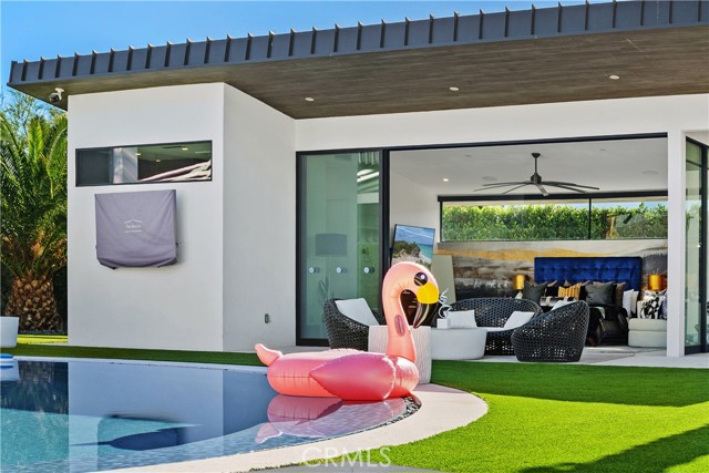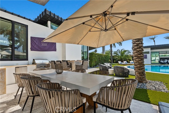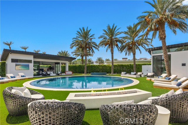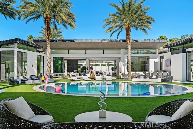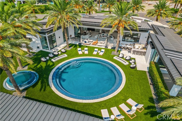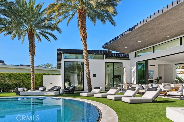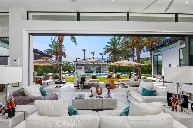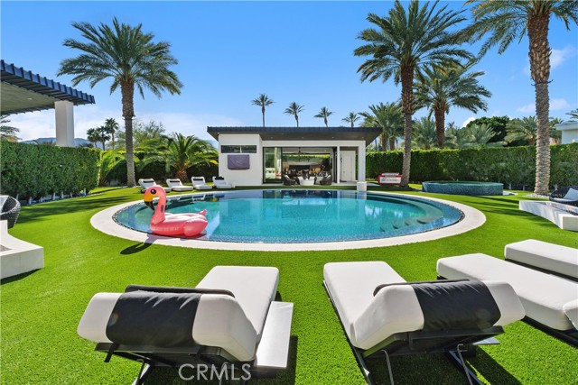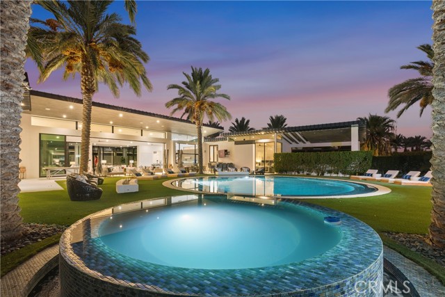 Introducing 8 Makena, An Architectural Masterpiece that is the premiere trophy property in the development that blends futuristic design with mid-century modernist aesthetics, inspired by the legendary architect Joseph Eichler. Dubbed the "Desert's Iron Man House", this private, gated estate is an exclusive oasis for the most discerning clientele. Set on over half an acre of meticulously manicured grounds, this 4,702-square-foot marvel offers a one-of-a-kind living experience in the prestigious enclave of Rancho Mirage, just moments from the fine dining and luxury shopping of El Paseo. With soaring ceilings up to 20 feet, floor-to-ceiling glass walls , no interior steps , limestone flooring throughout and expansive free flowing open spaces, this home captures 270-degree vistas of the stunning Santa Rosa Mountains, bathing the southwest-facing outdoor spaces in dramatic sunset views. The distinctive round arc reactor pool and expansive outdoor entertainment areas fulfill every desire, making this estate ideal for grand gatherings or intimate family moments. Inside, the residence boasts spacious living areas designed to entertain, including a luxurious primary suite with mountain views, a large walk-in shower, and a soaking tub. A separate, fully equipped casita adds a private retreat for guests or extended family, complete with its own kitchenette, bath, and outdoor living space. The home's strategic design harmonizes opulent indoor spaces the graciously tie in the outdoor living areas to be ONE, featuring a James Bond-worthy relaxation pavilion, bar, and barbecue area, perfect for the entertainer at heart. Whether lounging by the rim-flow pool, enjoying an outdoor shower, or relaxing in the suite's outdoor bath under the summer stars, this residence delivers an unparalleled experience. With a two-car garage, two-car carport, and close proximity to private jet charters, this estate offers the ultimate in convenience and luxury. 8 Makena is the epitome of architectural excellence, a world-class sanctuary ready to elevate any portfolio.