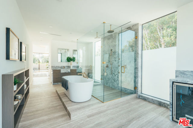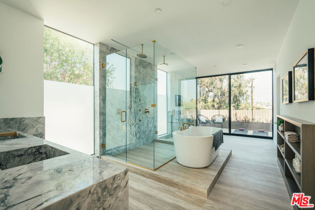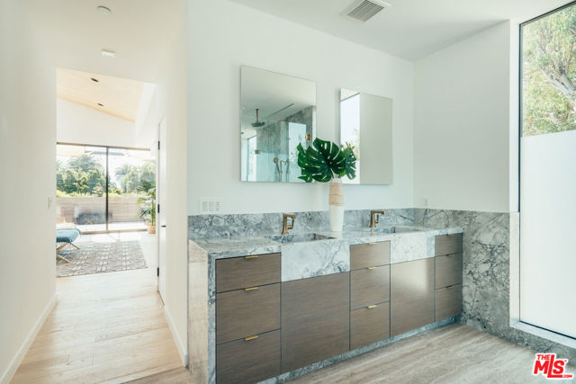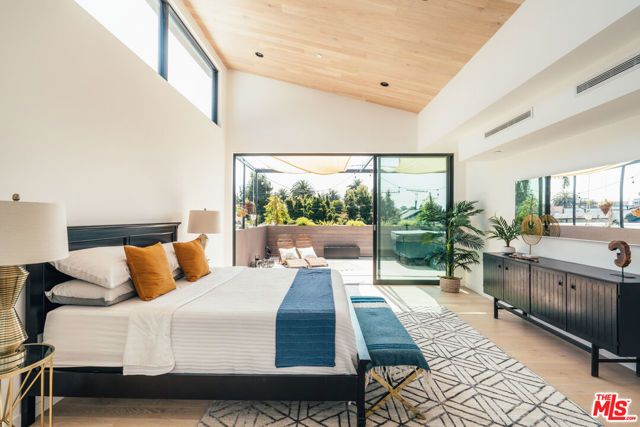 A refined coastal retreat awaits at this newly built modern residence, just moments from the beach and ideally located near Venice's iconic Windward Circle. This street-to-street property offers exceptional space and privacy, with parking for four vehicles. Thoughtfully designed, the home features 4 bedrooms and 5 bathrooms, blending rich textures with warm, natural tones to create a sophisticated yet welcoming atmosphere. Expansive double-height ceilings and dramatic floor-to-ceiling windows flood the interiors with natural light, perfectly capturing the essence of relaxed beachside living. The standout primary suite occupies its own private level, serving as a serene sanctuary with a spa-inspired marble bathroom, dual closets, a secluded outdoor hot tub, and two private terraces that seamlessly connect indoor and outdoor living. An elevator provides effortless access to every level, leading to a spacious rooftop deck designed for entertaining, dining under the stars, or simply enjoying panoramic views that stretch from the coastline to the Hollywood Hills. Modern design, elevated comfort, and the very best of Venice living come together in this exceptional home.