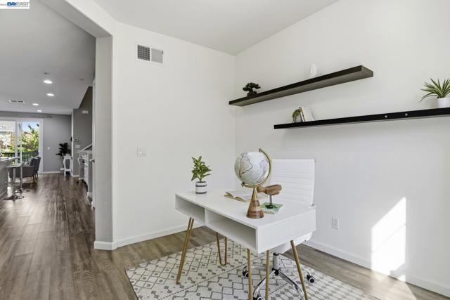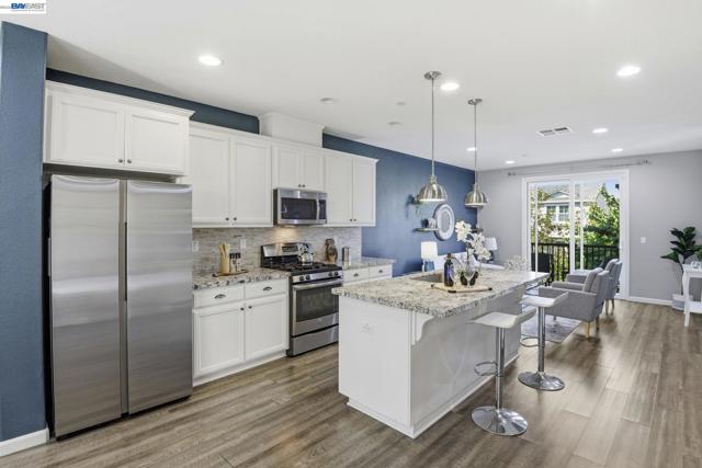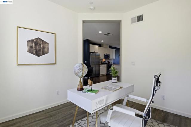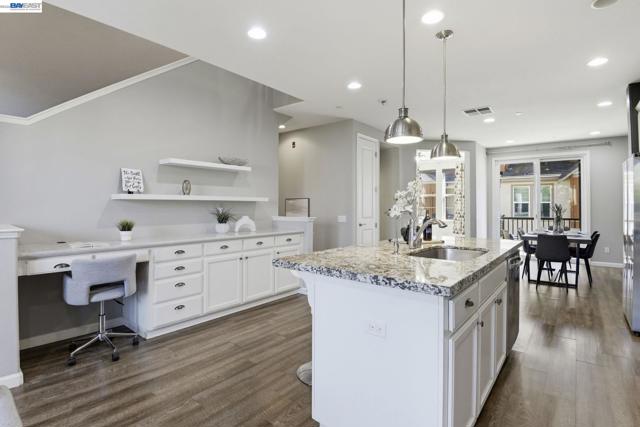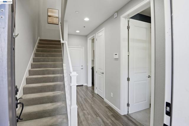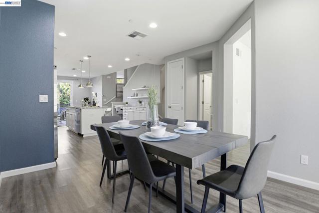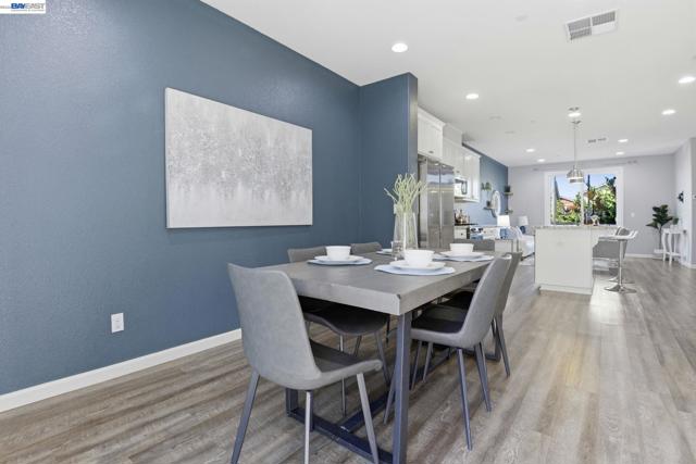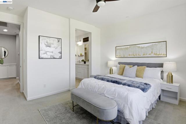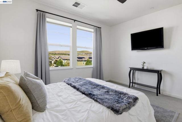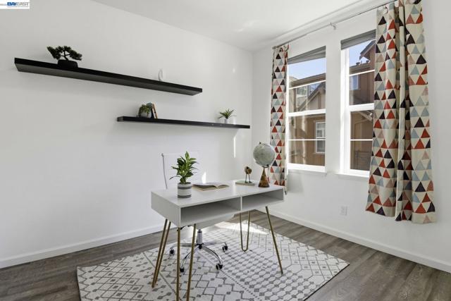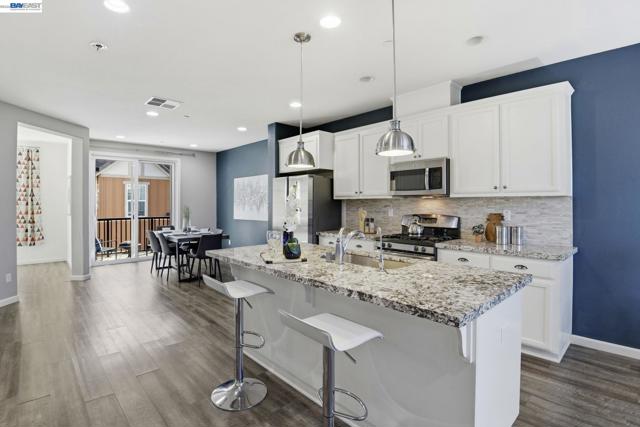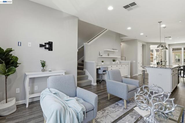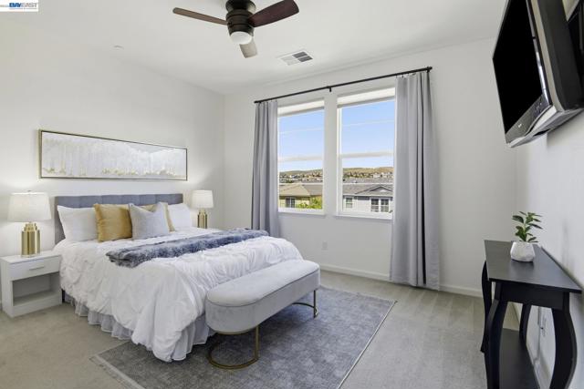This is the one buyers wait for! Welcome to this NORTH-facing, beautifully designed 3-bedroom + DEN, 3.5-bath townhome in the sought-after Jordan Ranch – Trio community, where modern functionality meets elevated design and everyday comfort. From the moment you enter, the street-level bedroom with full bath offers flexibility for guests, multi-generational living, or a private work-from-home retreat, enhanced by tasteful wall paneling that adds warmth and architectural character. The heart of the home unfolds on the main level—an open-concept living and dining space filled with natural light, thoughtfully styled with accent walls for a refined, designer-inspired touch. The adjacent gourmet kitchen features white cabinetry, granite countertops, and stainless steel appliances, blending timeless finishes with everyday practicality. A dedicated den/office provides the perfect space for remote work, creative pursuits, play area, gym, or a quiet reading nook. Upstairs, retreat to spacious en-suite bedrooms, including a serene primary suite with a well-appointed bath and ample closet space, designed for comfort and privacy. Additional highlights include a water softener system and EV-ready garage for modern living. Ideally located near top-rated schools, parks, shopping, dining, BART, and major commuter routes (I-580 & I-680), offering seamless connectivity. A home that balances style, flexibility, and location—crafted for how you truly live.