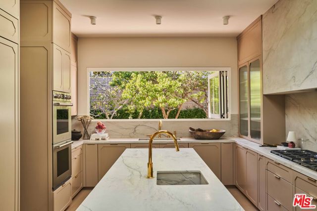 One of the finest mid-century architectural homes in Trousdale, OSKLO House sits on a flat half-acre lot with sweeping views of West LA. Designed by Benton & Parks AIA in 1966 and completely reimagined by OSKLO, this approx. 6,200 SF estate blends iconic design with modern luxury. A dramatic courtyard with a sculptural fountain sets the tone for the fully furnished, turnkey residence. Inside, the living room features an oversized fireplace and floor-to-ceiling windows, creating a striking introduction to the home. Custom OSKLO furnishings, museum-quality antiquities, and curated vintage pieces beautifully complement the rich materials and finishes throughout. No expense was spared. The kitchen embodies classic Beverly Hills living, complete with a breakfast nook, butler's pantry, and a wall of windows opening to the garden. The primary suite, showcasing nearly $1 million in stonework, offers wraparound windows overlooking the backyard and city lights beyond. A long hallway above a Japanese-inspired atrium leads to three ensuite bedrooms, with an additional ensuite near the kitchen and a pool bath by the outdoor cabana ideal for hosting. Outside, the angular pool pavilion includes multiple lounge areas, a swimming pool, fire pit, and outdoor bar, capturing the essence of Trousdale's signature indoor-outdoor lifestyle. Also available for lease.