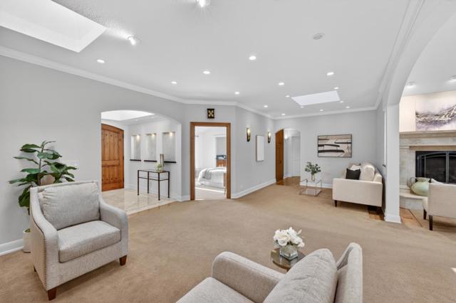 This stunning executive five-bedroom, four-bath residence offers an exceptional blend of space, natural light, and refined functionality. The expansive chefs kitchen serves as the heart of the home, featuring custom white oak cabinetry, a large breakfast bar, and generous workspace, perfect for both everyday living and effortless entertaining. Soaring ceilings and multiple skylights throughout fill the home with abundant natural light, creating an open and airy atmosphere throughout. The spacious primary suite is a true retreat, complete with a spa-like bath featuring a soaking tub, dual-sink vanity, dedicated beauty station, and a separate double shower. Step outside to a beautifully designed tropical backyard oasis, showcasing a tranquil koi pond and multiple lounge and entertaining areas, ideal for hosting gatherings or enjoying peaceful outdoor living. Additional highlights include a two-car garage, ample storage with dedicated sheds, and solar power for enhanced energy efficiency and low monthly utilities. Ideally located near top-rated schools, shopping, commuter routes, and major employment centers, this home offers the perfect balance of luxury, comfort, and convenience. Come see for yourself this home is something special!