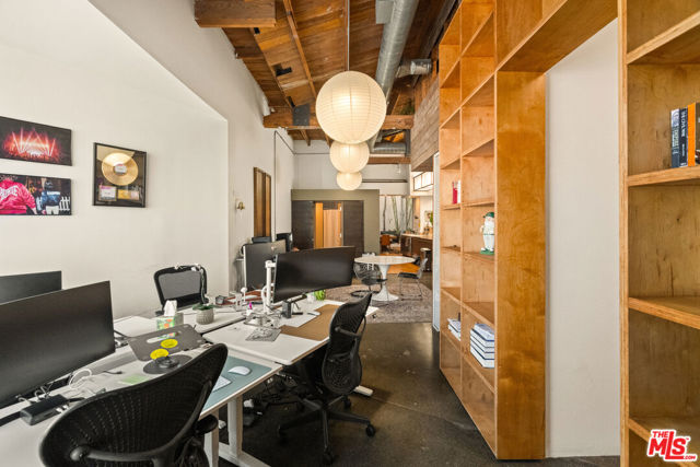 A rare opportunity to own a distinctive piece of Venice history, 120 Mildred is a 4,000-square-foot industrial architectural townhouse within the iconic Vanguard Lofts, originally part of the 1924 warehouse that housed the Venice Vanguard newspaper's printing press. Reimagined through a Danny Kaplan-designed renovation, the residence blends preserved warehouse character with modern live/work architecture, offering scale, volume, and exceptional flexibility in one of Venice's most unique compounds. Currently utilized as an office, the 3-bedroom, 3-bath layout includes an additional six private office spaces and approximately 2,500 square feet of ground-floor space with dramatic 17-foot ceilings. Designed to adapt to a wide range of uses, the property features large studio areas, mezzanine spaces, an open chef's kitchen, and seamless indoor-outdoor flow with private garden and deck spaces. Upstairs, flexible suites and expansive outdoor areas create endless possibilities for a creative office, live/work residence, or both. Exceptionally rare on its own, 120 Mildred also offers the unique opportunity to be combined with the adjacent 3,000-square-foot residence at 122 Mildred, creating a 7,000+ square-foot architectural compound just moments from the beach, Windward Circle, and Abbott Kinney.
