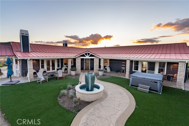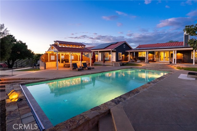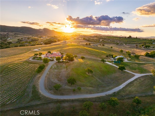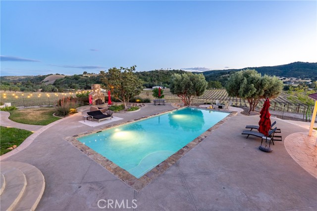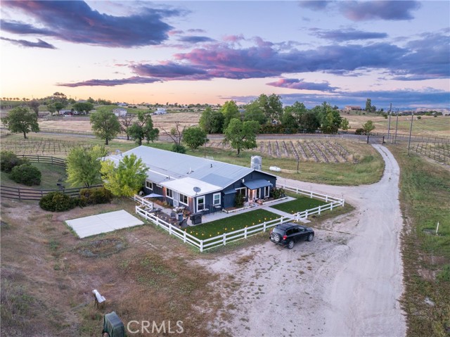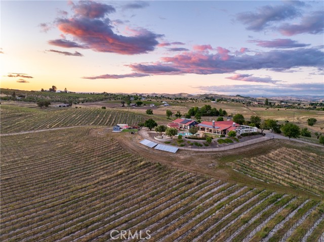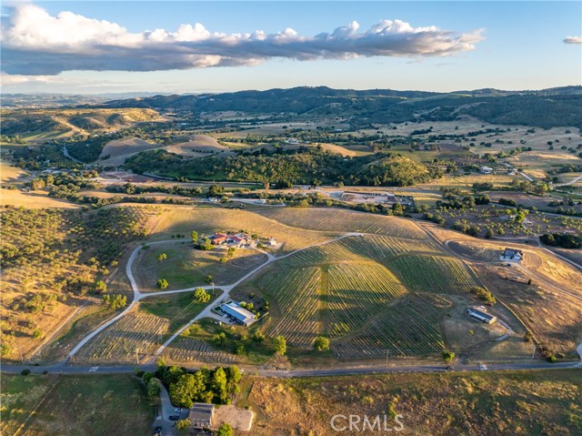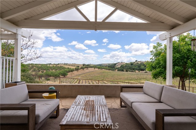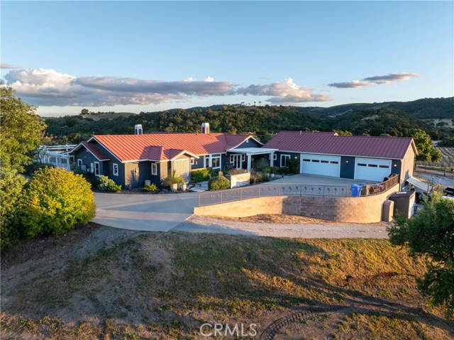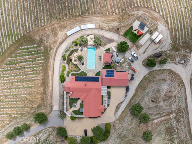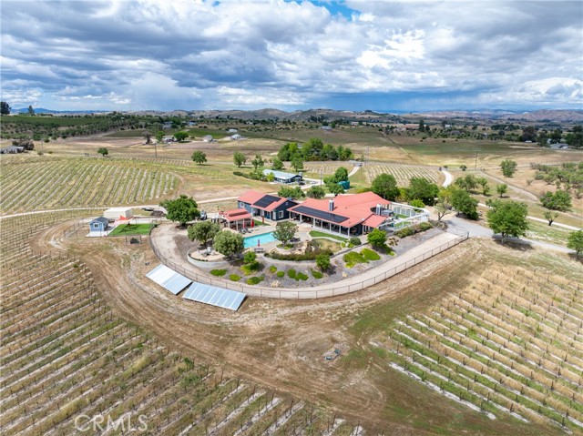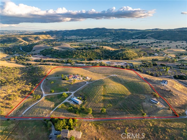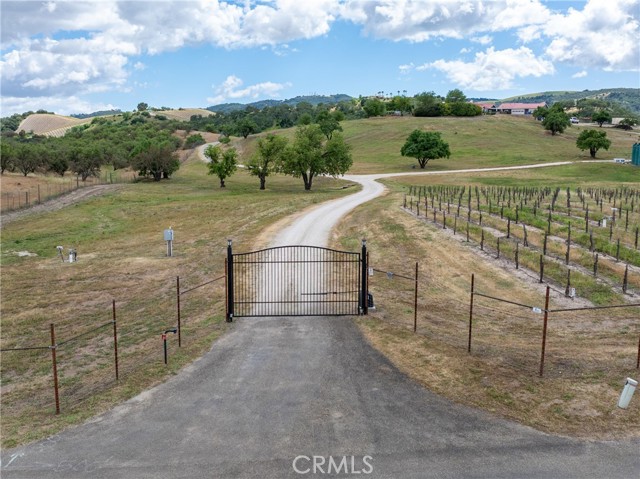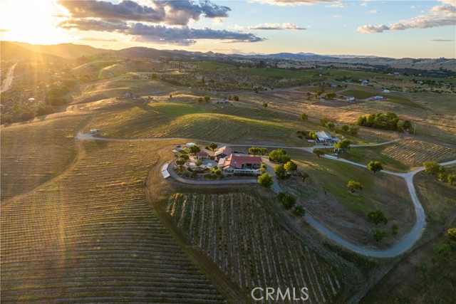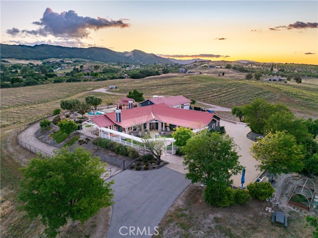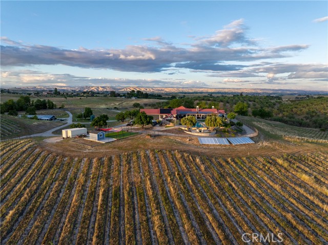 Perched atop 37± gently rolling acres in the sought-after Adelaida District near Paso Robles, this contemporary ranch estate blends elevated Wine Country living with exceptional income and vineyard potential. The property features a 3,100± sq ft main home and 450± sqft guest pool house, both thoughtfully built with vaulted ceilings, wood floors, custom cabinetry, and expansive windows capturing panoramic views. The exterior features a long lasting metal roof and with the durability and reliability of Hardie board siding. An additional renovated duplex totaling 1800+/- sf with garage space adds valuable rental income. A bonus manufactured home location provides additional flexibility for extended living or rental income. A recently professionally planted vineyard—featuring Petit Verdot, Petite Sirah, and Cabernet Sauvignon—offers fertile, usable ground ideal for boutique wine production, hobby winemaking, or long-term agricultural value. Designed for spectacular entertaining, the outdoor setting includes a solar-heated pool with fountains, a striking rock fireplace, and a fully equipped covered kitchen, while enjoying sunsets with friends and local wines. Additional highlights include additional utility spaces for a shop with ADU potential, detached pool house, wine cellar, gym, and solar with backup batteries, and three wells. Further opportunity and expansion for an Equestrian setup, corporate retreats and events, animal sanctuaries, gardeners paradise, and more. An excellent offering combining privacy, versatility, and investment potential in the heart of Paso Robles Wine Country.