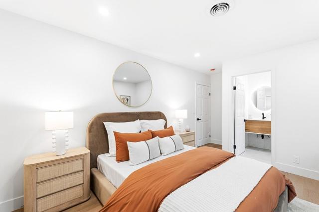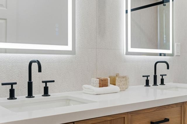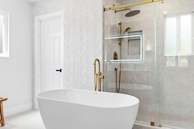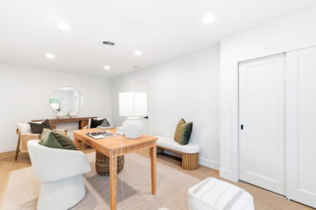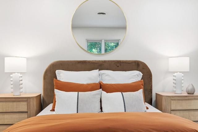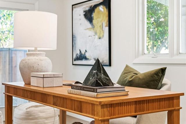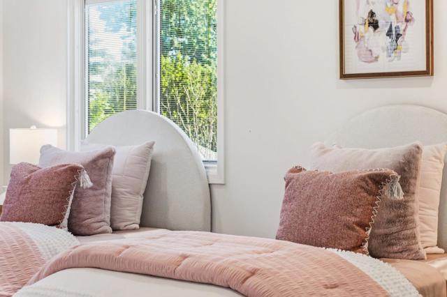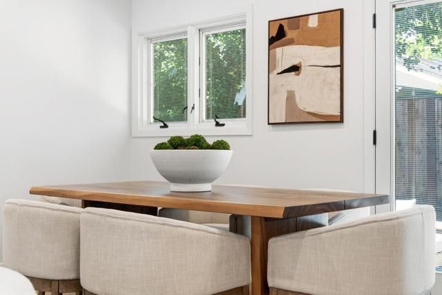 Rare quiet, cul-de-sac privacy, designer upgrades, & future expansion potential in Palo Altos desirable Green Gables. This thoughtfully updated 2-story home offers 3k+ sq ft with 6 BD (incl. 2 en-suites) & 5 BA on an expansive lot surrounded. High-quality materials & top-tier appliances throughout. Chefs kitchen features Thermador high-end appliances, large island, & custom cabinetry. Bathrooms finished w/ Kohler fixtures & Porcelanosa tile. Luxurious primary suite includes freestanding Duravit soaking tub, oversized walk-in shower, dual vanities, designer lighting, & private toilet room. Additional highlights include smart toilets, LED mirrors, & curated finishes across secondary baths. Modern features include floating glass handrail and 2-zone heating system w/ Nest controls. HVAC piping in place for future A/C. Spacious living areas anchored by a contemporary fireplace w/ seamless indoor-outdoor potential via kitchen pass-through. Backyard offers a large lawn ideal for play, entertaining, or pets. Detached office cottage plus a detached 1-car garage. Easy to convert attached 2-car garage into JADU (~400+ sq ft), expanding total to ~3,500 sq ft. Copper plumbing, double-pane windows, newer roof. Close to parks, shopping, commute routes, & top-rated schools.