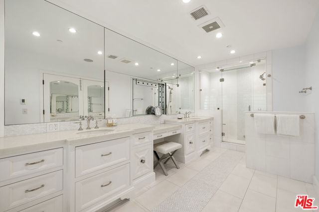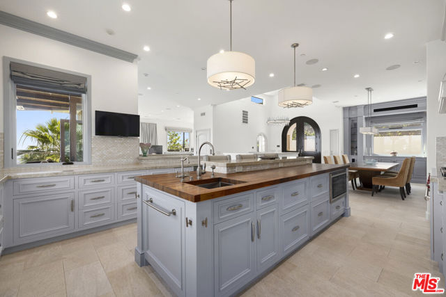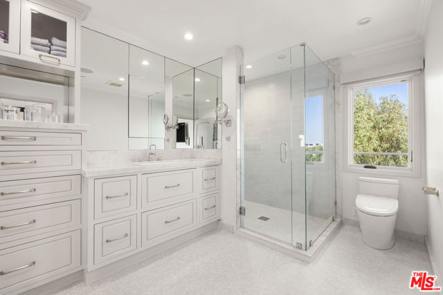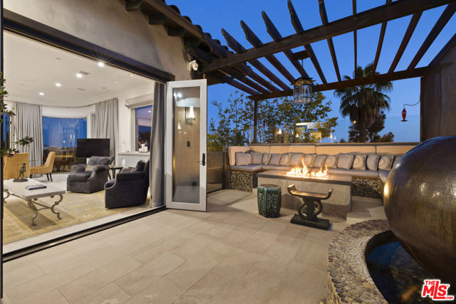 From Downtown Los Angeles to Century City, the skyline illuminates morning through evening, from virtually every room. Perched in the hills just five minutes north of Sunset, this recently remodeled, move-in ready three-story, 4,694-square-foot residence is one of those rare properties that delivers on every level. The views alone are worth the visit, but step inside and the home more than lives up to the setting. Spanning four bedrooms across three floors, the layout flows effortlessly between two expansive living rooms, a chef's kitchen with professional-grade appliances and a large center island, and two exceptional primary suites. One features a fireplace, floor-to-ceiling windows framing the city, and a spa-caliber bath designed for total relaxation. What often surprises most is the quiet - the outside world truly falls away the moment you enter. The three-story design creates natural separation and privacy, allowing each level to function as its own retreat. A gathering can unfold at the pool level, a film can play upstairs, while another space remains completely serene. The indoor bar sets the tone for entertaining, leading out to a sleek pool framed by open sky and city lights, a fire pit lounge with wraparound built-in seating, and multiple heated decks - each offering its own unobstructed view of one of the world's great skylines. For those who live and work at the highest level, the home is equipped with a dedicated theater, professional sound studio, private gym, and two offices - all complemented by a private elevator, solar system, and Tesla charger.