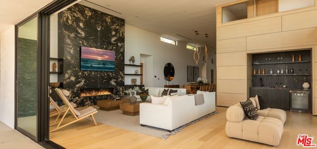 The Wimbledon Estate. Perched above the coastline in coveted Malibu Park, this ultra-private coastal retreat blends laid-back surf culture with elevated organic modern design. Set on expansive grounds with sweeping ocean views, the property offers a rare sense of seclusion just moments from Zuma Beach, Point Dume, and some of Malibu's most iconic stretches of coastline.Spanning approximately 6,650 square feet, the residence features 6 bedrooms and 7 bathrooms, thoughtfully designed for effortless indoor-outdoor living. Walls of glass bring in abundant natural light and endless blue horizons, while warm finishes and clean architectural lines create a home that feels both refined and relaxed. A two-car garage adds everyday convenience to the property's thoughtful layout.Outside, the grounds unfold like a private resort. An infinity-edge pool seems to disappear into the Pacific, surrounded by multiple lounge and entertaining areas designed for both quiet mornings and sunset gatherings. A full-size tennis court anchors the estate, complemented by a separate guest house, tennis house, and gym, offering exceptional flexibility for hosting, wellness, or creative use.Lush landscaping, mature greenery, and thoughtful positioning provide a true sense of privacy while maximizing light and views from every angle. A rare offering where design, setting, and lifestyle come together in one remarkable Malibu retreat.