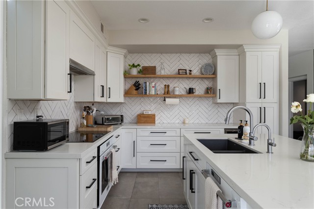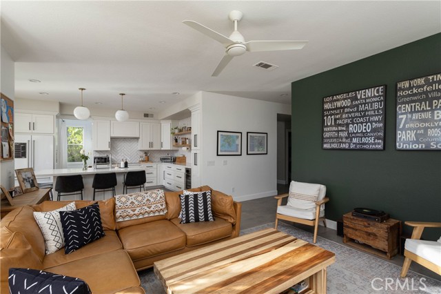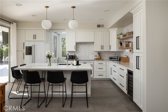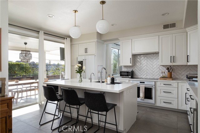 Panoramic views, abundant natural light, and beautifully updated interiors define this 5-bedroom, 3-bath Robinson Ranch home in the sought-after Lyon Highlands tract. With approximately 2,657 square feet, soaring ceilings and expansive windows fill the home with light, creating an open and inviting feel throughout. The flexible floor plan includes a highly desirable main-floor bedroom and full bath—ideal for guests, extended family, or a private home office. The remodeled kitchen opens seamlessly to the family room and features a large center island, updated cabinetry, subway tile, generous storage, and picturesque views that elevate everyday living. Upstairs, the spacious primary suite offers a true retreat, complete with a dedicated dressing area and walk-in closet. The fully renovated bathroom has been thoughtfully redesigned with a large frameless glass shower, custom vanity, and built-in storage, creating a clean, modern aesthetic. Secondary bedrooms are well-sized, and additional bathrooms have been tastefully updated. Additional upgrades include: HVAC system, whole house cooling fan, whole house water filtration system, and soft water system—enhancing comfort and efficiency throughout the home. A separate, newly remodeled laundry room and direct access to the 3-car garage with built-in cabinetry provide added functionality and storage. The backyard is designed for both relaxation and entertaining, with multiple seating areas, turf, fruit trees, a covered patio, outdoor speakers, and sweeping forever views—perfect for enjoying Southern California indoor-outdoor living. Located in the established Robinson Ranch community, residents enjoy access to neighborhood parks, an Olympic-sized gated pool and spa, sport courts, and tot lots, along with nearby hiking and biking trails including Bell View Trail. Zoned for Robinson Elementary and part of a well-regarded school district, with low HOA and no Mello Roos, this home offers an exceptional combination of lifestyle, location, and long-term value.