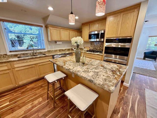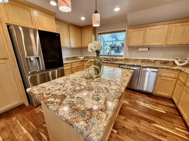 Incredible custom home set on a huge lot, offering exceptional space, versatility, and endless possibilities, including potential for an ADU. The expansive front yard is a true park-like setting, featuring beautiful mature trees, lush landscaping, and a welcoming front deck. Step inside to find stunning acacia wood floors that flow throughout the home, creating warmth and elegance. The formal living and dining room overlook the backyard, providing a picturesque setting for gatherings and everyday living. The updated kitchen features beautiful countertops, stainless steel appliances, and a cozy eat-in area, perfect for entertaining and daily enjoyment. The spacious family room offers plenty of room to relax and spend time with family and friends. Designed with flexibility in mind, this ideal floor plan is perfect for multigenerational living, featuring two primary suites: one on the first floor and another on the second floor. The first floor includes three bedrooms and two and a half bathrooms. The second level offers a primary suite with balcony, large walk-in closet and gorgeous bathroom. Additional upstairs bedroom has its own private bathroom. Step outside to enjoy the expansive grounds that truly set this property apart. The backyard is a tropical oasis, complete with a sparkling saltwater swimming pool with solar, perfect for relaxing or hosting gatherings. The large lot provides incredible potential, including space for a possible ADU, gardens, or additional outdoor living areas. Extensively remodeled in 2014, this home features updated plumbing, electrical, and modern finishes throughout. Additional upgrades include a dual HVAC system, two tankless water heaters, and an insulated/sheetrock-finished garage. This is the perfect property for entertaining and enjoying quality time with family and friends while offering comfort, flexibility, and future potential.