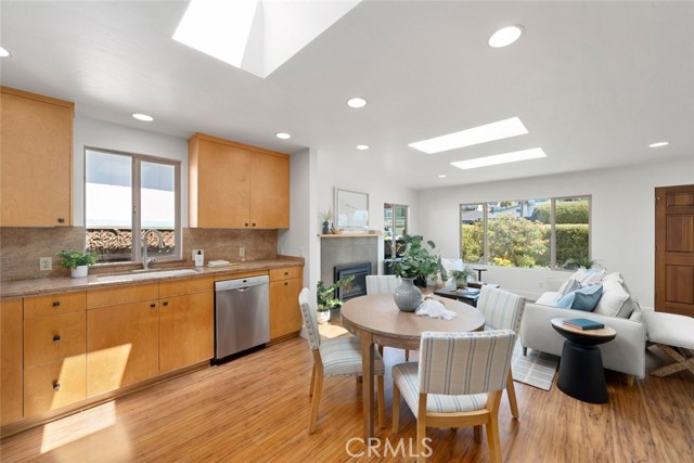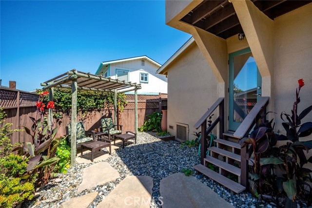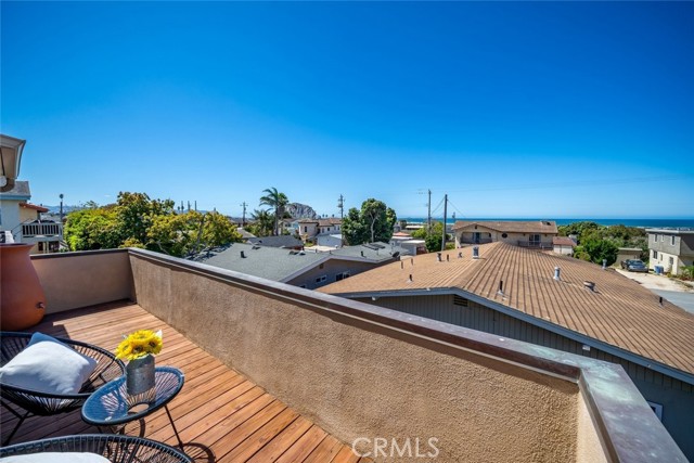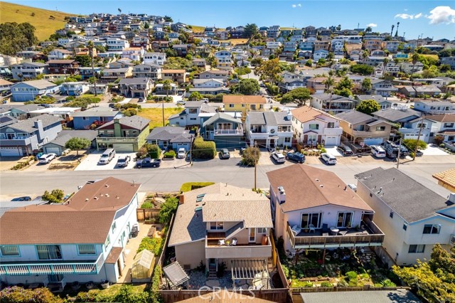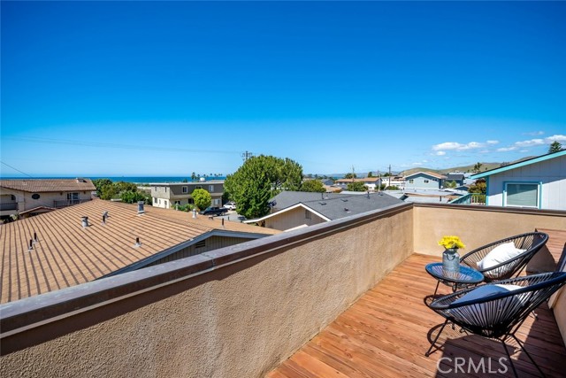 Enjoy coastal living in this beautifully maintained 3-bedroom, 2.5-bathroom home offering captivating views of Morro Rock and the Pacific Ocean. With approximately 1,332± square feet, the thoughtfully designed layout features an open-concept main level with abundant natural light, two bedrooms, plus a full bath and powder room. The living room includes a gas log fireplace with tiled surround, while the kitchen features granite counters, birch cabinetry, and stainless steel appliances. Upstairs, the primary suite serves as a peaceful retreat, complete with a spacious bedroom, a recently renovated bathroom, and a view deck perfect for taking in ocean breezes and sunset vistas. The upper level also offers flexibility for use as part of the main home or as a potential lock-off unit for added income or multi-generational living. An inviting backyard offers flagstone, drought tolerant landscaping and two pergolas designed for relaxing or entertaining. Additional highlights include a pavered front driveway, enclosed carport, dual pane windows, and multiple skylights. Recent upgrades, including a new roof (2024) and fresh interior paint, add to the home's move-in-ready appeal. Whether you're seeking a full-time residence, coastal getaway, or investment opportunity, this Morro Bay gem delivers comfort, versatility, and scenic charm.