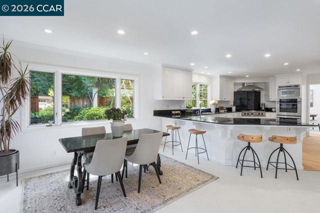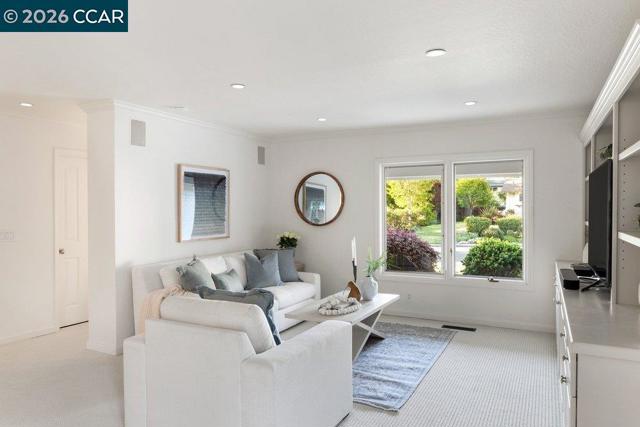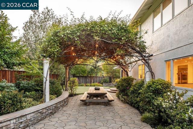This Moraga home is ideally located in every respect. It sits at the end of a quiet cul-de-sac, just 400 yards to Joaquin Moraga Middle School, three-quarters of a mile to Camino Pablo Elementary, and a mile to the Moraga Shopping Center. Some of the home’s best features are invisible from the street: a back yard with redwood trees, a Samsung outdoor television, gas firepit, built-in barbecue, adjoining granite countertop, outdoor dining area (under a climbing-rose pergola), putting green, and hot tub – all illuminated by a lighting plan conceived by noted landscape designer Garden Lights. Belgard Mega-Arbel pavers grace the front porch patio, walkway and back yard. Inside, enjoy the remodeled family room and open-concept kitchen (which has a new refrigerator and two dishwashers). Formal gatherings can be held in the dining room (easily seating 8) and the spacious living room. A remodeled half bath completes the main floor. Three bedrooms, 2 full baths and an office nook lie up the stairs, all temperature-controlled with new HVAC equipment. Parking is easy in the 2-car garage, a wide Belgard Bergerac pavers driveway, and on the quiet cul-de-sac. This home exemplifies the convenience and charm that make Moraga such a lovely place to live.