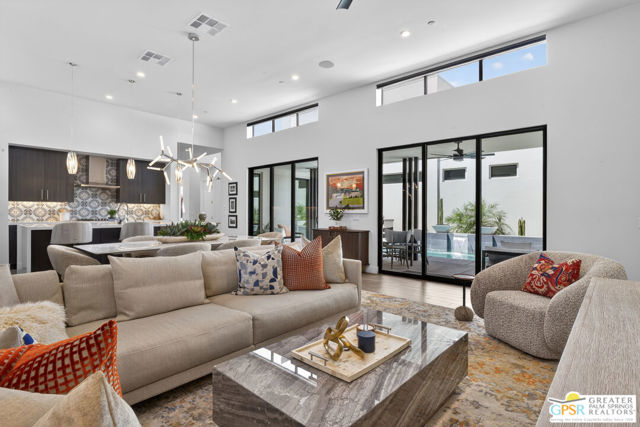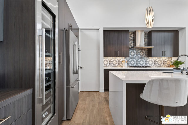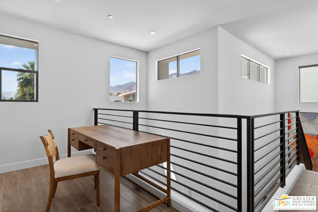 Welcome to 1320 Woodward at VUE, Where striking modern architecture pairs with laid-back desert living in one of Palm Springs' most visually compelling neighborhoods. This is more than a home; it's a statement of style, sophistication, and intentional design, where dramatic scale, clean lines, and walls of glass create a seamless connection between indoors and out. Offering the largest floor plan in VUE at an impressive 2,693 sq. ft., this 4-bedroom, 3.5-bath residence (with the 4th bedroom currently styled as a chic office/den) delivers both flexibility and privacy. A smart, modern layout places a guest retreat on the second level, ideal for visitors or multigenerational living. Every element has been thoughtfully elevated with designer finishes and premium upgrades, including a top-tier Thermador appliance suite with integrated wine refrigeration, EV charging, and an expanded OWNED solar system with 41 panels for optimal efficiency. Step outside to your own private resort. The reimagined pool is a showpiece, featuring a dramatic waterfall, fire bowls, outdoor shower, and built-in BBQ perfect for unforgettable evenings under the desert sky. Bold architecture, refined materials, and an unbeatable Palm Springs setting this is VUE living at its finest, crafted for those who demand exceptional design and elevated everyday living.