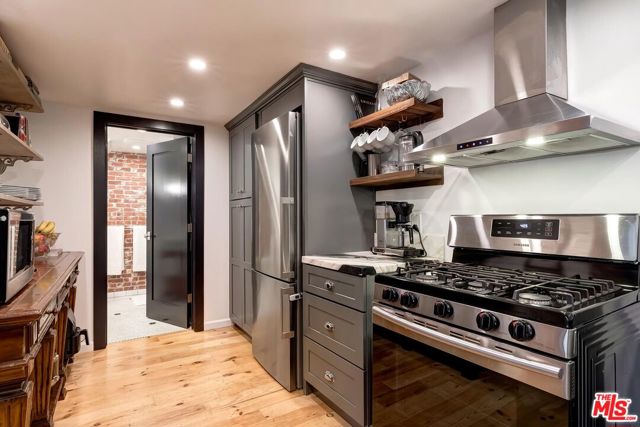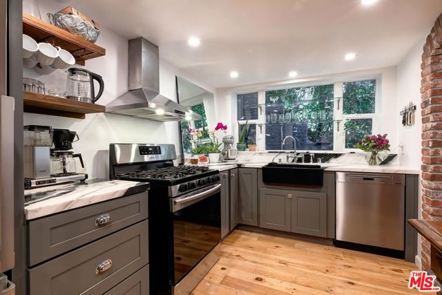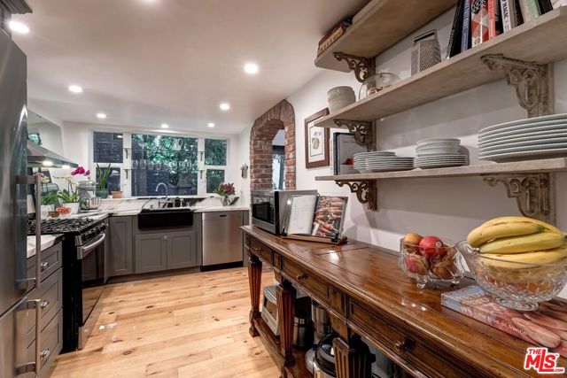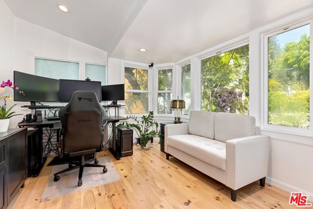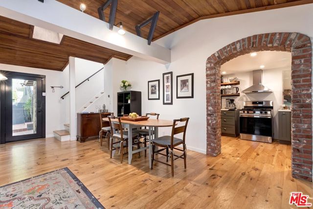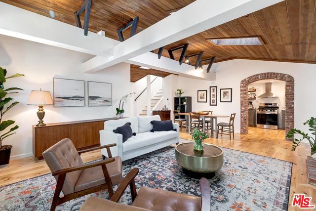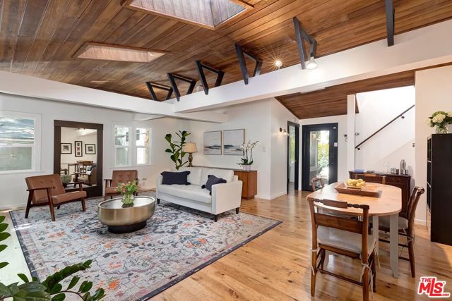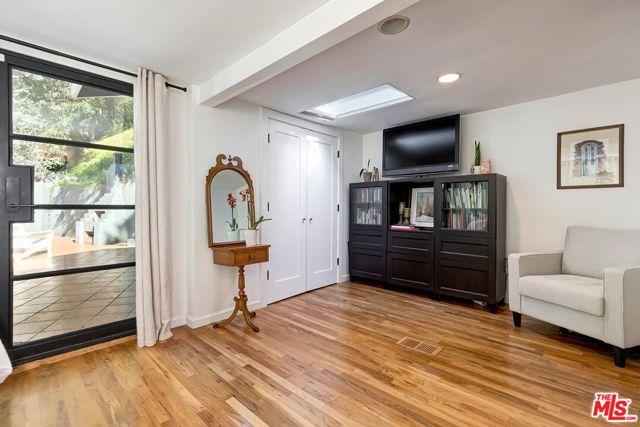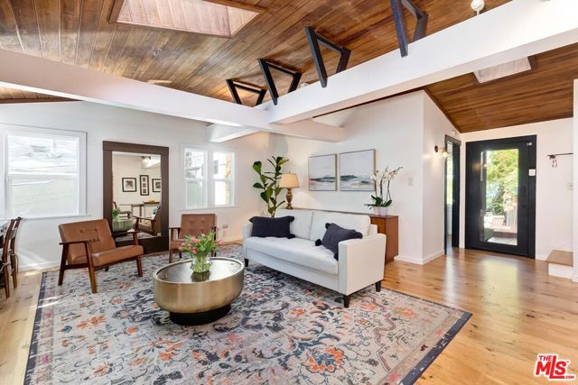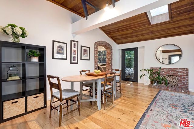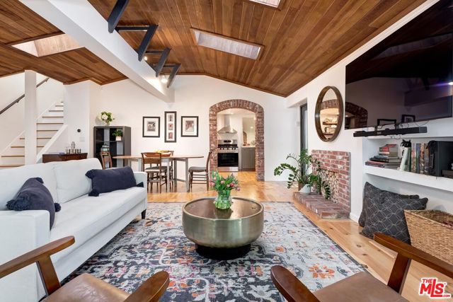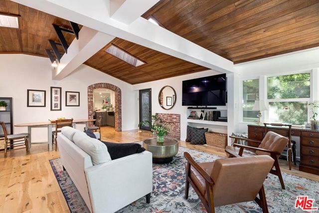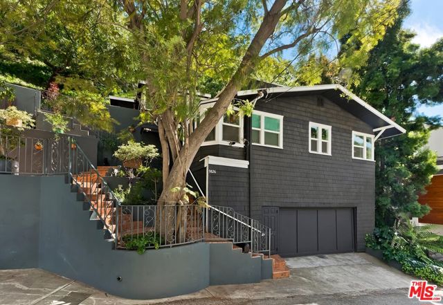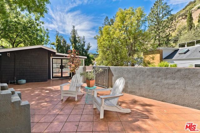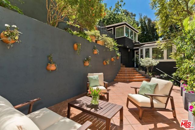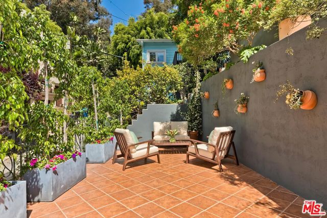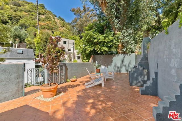 A perfect ambiance of tranquility and understated elegance in this vintage cottage sitting pretty above the street level on the large lot. This property offers a possibility to reimagine the entire setting by adding on to the existing structure or build new. The lot size allows to expand beyond what is there presently. The charm of the exterior structure in a country setting accented by multiple patios paved with Saltillo tiles is complimenting the beautiful interiors. Living room has skylights and pitched beamed ceiling, hardwood floors and w brick fireplace. Well-appointed kitchen with a bay window and stainless-steel appliances. Two bedrooms upstairs and one bedroom/den downstairs are all light and airy, with the master bedroom providing an easy access to the outdoors through a large double door. A charm galore offered to the ones who appreciate a good quality of life.
