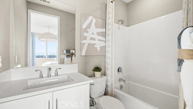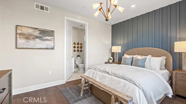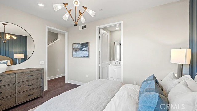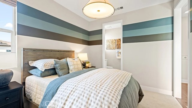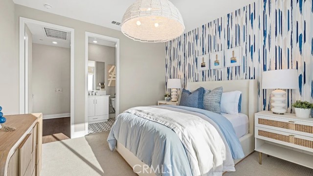 Plan 3 at RHEA in Great Park offers a highly sought-after 4-bedroom, 4.5-bath layout, with each bedroom featuring its own private ensuite bath—providing ultimate comfort and privacy for every member of the household. The first floor includes a versatile bedroom with ensuite, ideal for guests or a home office, along with a 2-bay garage. Upstairs, the second level is designed for modern living and entertaining, featuring a spacious kitchen with a large center island, walk-in pantry, abundant cabinetry, walk-in laundry room, and a private balcony for seamless indoor-outdoor living. The third floor hosts a generous primary suite along with additional secondary bedrooms, all with their own bathrooms. Situated in a desirable street-facing location just steps from a 13-acre park with pools, clubhouse, sports courts, and more, this home offers both convenience and an elevated lifestyle