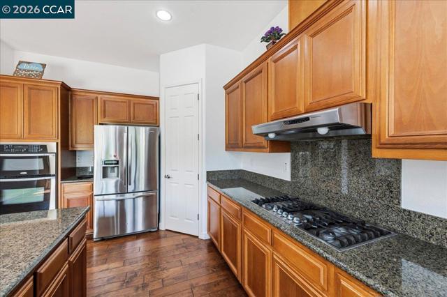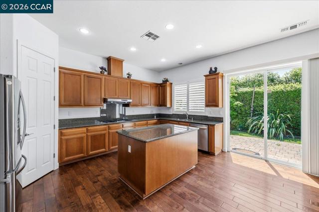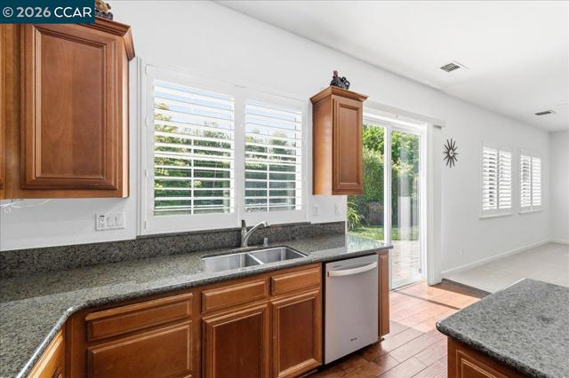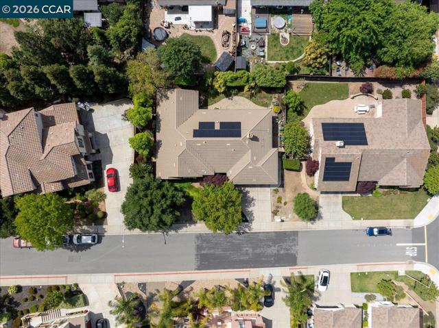 Welcome to one of Concord’s most desirable neighborhoods, offering exceptional convenience and access to highly rated schools, shopping, dining, and outdoor amenities. This prime location is within walking distance to local plazas, cafés, restaurants, fitness clubs, scenic trails, and top-rated schools including Clayton Valley Charter High School, Pine Hollow Middle School, and Highlands Elementary School. This beautifully maintained, single-story residence is move-in ready and ideally situated on a quiet court. The home features four spacious bedrooms and three full bathrooms, set on an approximately 0.25-acre lot. A three-car garage is equipped with a high-end storage cabinet system, providing both functionality and organization. The property also includes a solar energy system that is fully owned by the sellers, offering added efficiency and long-term cost savings. Inside, the home showcases classic birchwood flooring and a light-filled layout that enhances both the living and dining areas. Custom wood shutters and elegant ceiling fans add timeless style throughout, while all bedrooms are comfortably carpeted. The well-appointed kitchen features granite countertops, a walk-in pantry, and rich wood cabinetry with ample storage. Designed for both everyday living and entertaining, the kitchen includes a breakfast nook and opens seamlessly to the family room, complete with a gas fireplace and views of the backyard. The outdoor space offers a private retreat with mature landscaping in both the front and back yards. Enjoy a beautifully designed backyard featuring a paver patio, walkways, and a spacious grassy area—perfect for relaxation or entertaining.
