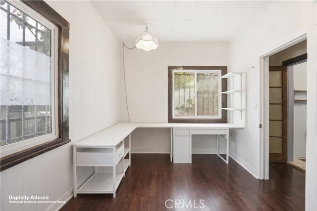 Welcome to 5328 Marmion Way, the perfect starter home with upside in Highland Park, known as one of LA’s most art-forward communities in Los Angeles. This charming 1906 bungalow, located within a designated Historic Preservation Overlay Zone (HPOZ), offers a warm and functional layout complemented by thoughtful upgrades, including upgraded electrical panel and plumbing. Inside, you’ll find 2 spacious bedrooms, 1 full bath, newer laminate flooring, dual-pane windows, a large kitchen, breakfast nook, stainless steel refrigerator, and a dedicated laundry room with wash basin. Beyond the automatic gated iron fence and driveway, enjoy a covered porch with a serene yard featuring fruit-bearing lemon, avocado, pear, and guava trees, along with a gardening area. The home's mature trees and outdoor space create an inviting setting for morning coffee, creative moments, or gatherings. Parking is a standout feature, with a single-car garage, covered patio, and additional driveway spaces—a rare find in this creative, culture-rich dynamic neighborhood. This home is walkable and centrally positioned just one block from Figueroa Street, the heartbeat of Highland Park. Figueroa Street is filled with coffee shops, boutiques, local restaurants, and a vibrant social scene. Highland Park offers a strong sense of community with galleries, murals, live music venues, pop-up events, and everything from elevated dining to casual taco spots, Highland Park Bowl and Highland Theatre. For outdoor enthusiasts, you’re just moments from Debs Park and the scenic Arroyo Seco, offering hiking trails, hill top views and natural beauty. Commuters will appreciate the proximity to the A Line Metro Rail, providing easy access to Downtown Los Angeles and Pasadena. Don’t miss this unique opportunity to own a historic home that blends urban access, neighborhood charm with both immediate comfort and long-term potential.