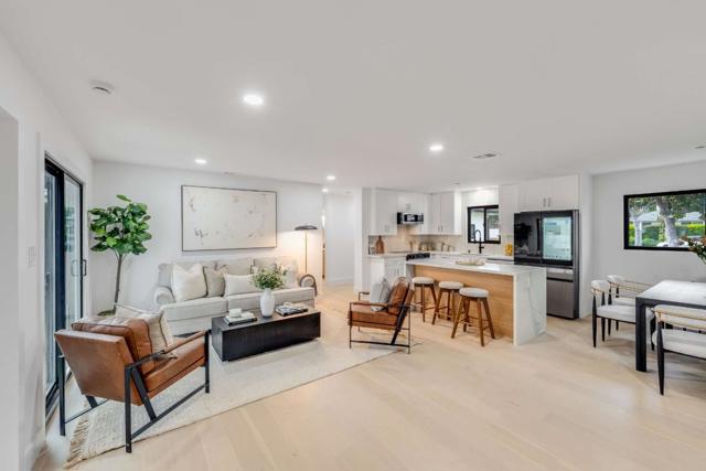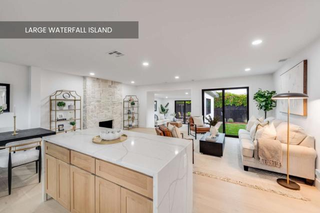 Ideally located just blocks from Apples main campus with easy access to multiple commute routes, this home is fully renovated with designer finishes throughout. Thoughtfully designed layout separates living and sleeping areas. One wing features bright open kitchen, dining area, living room, and separate family room, while the other includes three bedrooms and two full bathrooms for added privacy. Upgrades shine throughout with white oak wide-plank flooring, new black-framed windows, and curated designer finishes including Kohler fixtures, brass hardware, and custom lighting. The kitchen boasts Calacatta quartz countertops, fluted tile backsplash, a large waterfall island, two-tone shaker cabinetry, and Samsung smart appliances. Bathrooms feature white oak vanities with fluted detailing, brass-framed glass shower doors, and custom tile work. Additional highlights include updated stone fireplace, dual-pane windows and sliding doors, new interior and exterior doors, recessed lighting throughout, level 5 smooth drywall, interior and exterior paint, new AC and heating. Enjoy a large fenced backyard with new sod, perfect for entertaining, kids, or relaxing outdoors. Zoned for highly regarded schools: Laurelwood Elementary, Peterson Middle, and Wilcox High School.