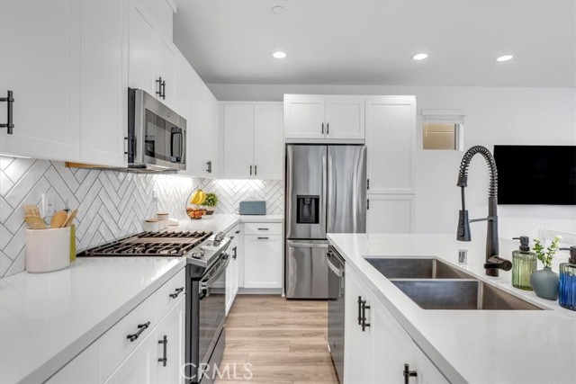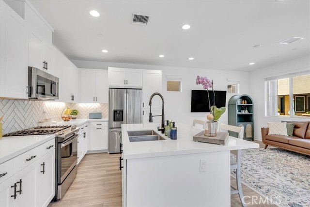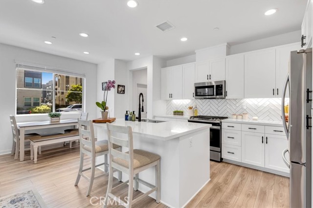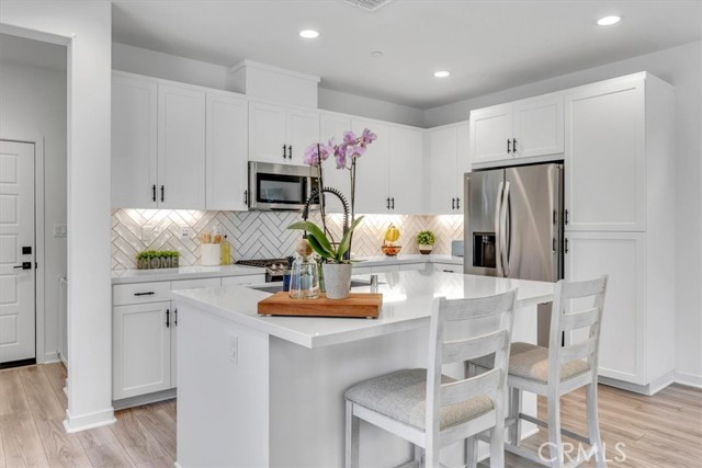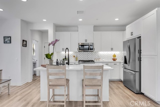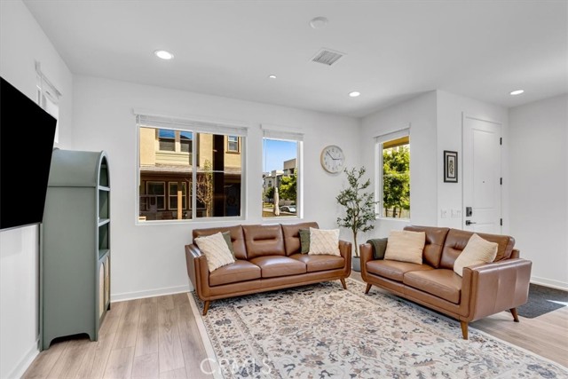 Welcome to 350 Harvest Drive in the highly sought-after Rienda community of Rancho Mission Viejo—a beautifully upgraded 2-bedroom, 2.5-bathroom home offering 1,341 sq ft of modern, turnkey living. Step inside to a light-filled open floor plan featuring luxury flooring, recessed lighting, and a seamless flow between the living, dining, and kitchen spaces—perfect for both everyday living and entertaining. The stunning kitchen showcases white shaker cabinetry, quartz countertops, a stylish herringbone backsplash, stainless steel appliances, and a spacious center island with bar seating. Upstairs, you’ll find two generously sized bedrooms, each with its own en-suite bathroom, providing ideal privacy and comfort. The primary suite offers a relaxing retreat with abundant natural light, while the secondary suite is ideal for guests, a home office, or additional living space. A convenient upstairs laundry area adds to the home’s thoughtful layout. Enjoy indoor-outdoor living with a private front patio—perfect for morning coffee or evening relaxation. The home also includes fully paid off solar panels, an attached garage, and is ideally situated in a newer, well-maintained neighborhood. Centrally located within Rienda, this home places you right in the heart of one of Rancho Mission Viejo’s most vibrant communities. Residents enjoy a true golf cart lifestyle with access to incredible HOA amenities including resort-style pools, fitness centers, a clubhouse bar, arcade room, pickleball and bocce ball courts, and local restaurants and businesses. The community is known for its lively events such as Farmers Markets and neighborhood gatherings. Zoned for award-winning Rancho Mission Viejo schools, with shopping, dining, and beautiful beaches just a short drive away, plus easy access to the 241 Toll Road. This is an incredible opportunity to own a stylish, move-in-ready home in one of Orange County’s premier master-planned communities.