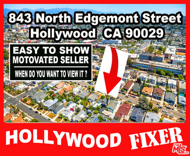 GREAT OPPORTUNITY TO BUY A FIXER IN HOLLYWOOD CA....3 BEDROOM 2 Bath HOME Plus 2 OTHER BUILDINGS ON THE LOT.... TONS OF POTENTIAL, ....GREAT NEIGHBORHOOD. SUPER CLEAN & PRETTY....VERY WIDE STREET.... LOTS OF PARKING. 1 BLOCK NORTH OF MELROSE AVE. The Seller over the years has done a lot of changes and improvements to the property. Changed the whole floor plan. It is a very interesting and creative space with lots of great potential for ( 1 ) HOME BUYER FAMILY TO LIVE IN ....WITH LOTS OF SPACE or ( 2 ) A FIXER BUYER / DEVELOPER.....lots of Improvements done....But still a work in progress. ( 3 ) PERFECT SET UP FOR CO - LIVING. Property is CURRENTLY BEING USED AS A CO-LIVING PROPERTY - GENERATING $$$$. GREAT LOCATION ....... 5 MINUTES TO THE HOLLYWOOD FREEWAY AND A SHORT WALK TO THE SUBWAY METRO NEAR BY. PROPERTY WILL BE DELIVERED TOTALLY VACANT...........WHEN DO YOU WANT TO SEE IT. MOTIVATED SELLER.. LETS MAKE A DEAL ! SELLER WANTS IT SOLD. ASAP ....... AND A QUICK CLOSE OF ESCROW !!!! PROPERTY ALSO HAS A VERY HIGH END SECURITY MULTI CAMERA SYSTEM. THIS IS A VERY UNIQUE PROPERTY WITH LOTS OF POTENTIAL. A MUST SEE ! .CALL BOB.