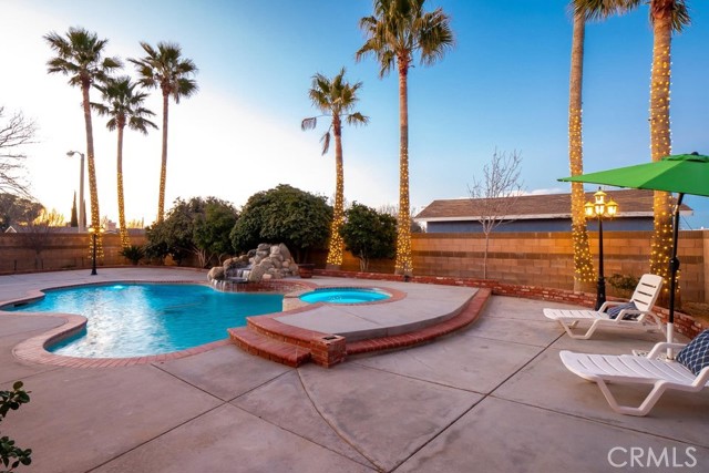 This beautiful Quartz Hill pool home sits on a corner lot in one of the area's most desirable neighborhoods. It's clear from the moment you arrive that the home has been well cared for. The backyard feels like a private retreat, complete with mature palm trees, a pomegranate tree, blooming roses, and an in-ground pool and spa. A full-length covered patio makes it easy to enjoy the space year-round. Inside, you'll find wood-look tile flooring that's both stylish and durable, along with updated designer paint throughout. The layout includes a formal living and dining room, plus a spacious family room with a cozy fireplace. The primary suite is generously sized, and there are three additional bedrooms with plenty of space. Storage is abundant throughout the home. The front yard stands out with lush grass and a variety of rose bushes, adding to the home's curb appeal. The property is fully enclosed with block walls topped with brick, and there's paved, covered RV parking as well. The location is just as appealing. You're within walking distance of local schools, as well as downtown Quartz Hill with its shops, restaurants, and everyday conveniences. No HOA and No Mello Roos! As an added bonus, the home includes a solar contract that reduces your electric costs by around 50%.