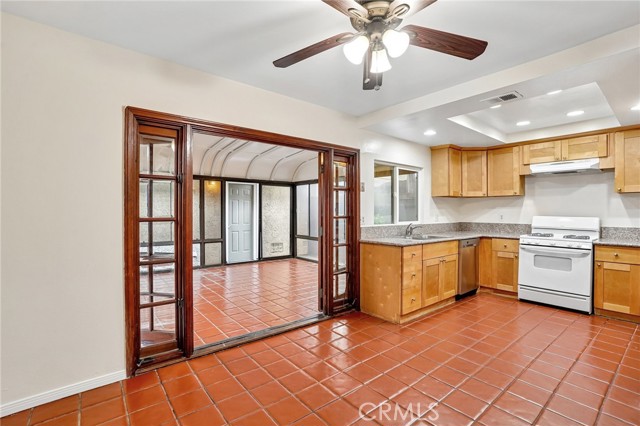 Located within the desirable Turnbull Canyon Village community, this well-appointed 3-bedroom, 2.5-bathroom townhome offers a functional floor plan in a prime Hacienda Heights location. The main level features a spacious living room with a brick fireplace, a separate dining area, and an updated kitchen. French doors lead to a covered patio enclosure, providing versatile bonus space ideal for a sunroom, office, playroom, gym, or additional family area. Upstairs, the primary suite includes a three-quarter bath. Two secondary bedrooms are also on this floor; one has a small walk-in closet, and there is a full hallway bathroom. Additional highlights include a two-car garage with washer and dryer hookups, Spanish tile flooring on the main level, and bamboo flooring upstairs. Recent upgrades include fresh interior paint, recessed lighting, updated light fixtures, ceiling fans, new carpet on the staircase, a newer water heater, and a recently installed garage door opener. The Turnbull Canyon Village HOA offers a gated pool and spa, ample guest parking, and low monthly dues of $300, which include water, trash, and exterior maintenance. This is an excellent opportunity offering comfort, convenience, and value—truly a must-see property.