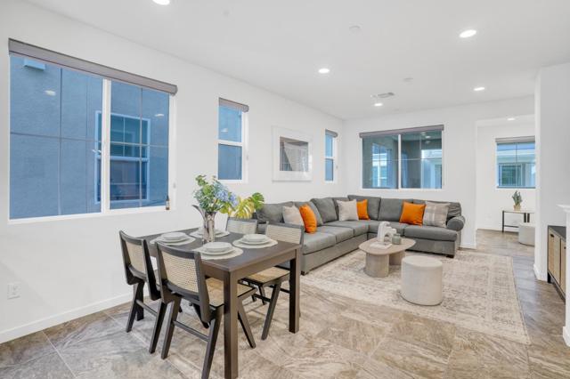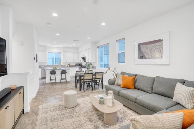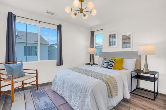 This modern tri-level townhouse offers 4 bedrooms and 3.5 bathrooms with a bright open-concept layout, a private attached side-by-side 2-car garage, extra storage space, and prewiring for an EV charger. A ground-floor bedroom suite with a full bath adds flexibility for guests, extended family, or a home office, while the main level features open living and dining areas, a bonus office nook, a large covered patio, and a stylish kitchen with premium white cabinetry, a center island, and upgraded countertops. The spacious primary suite includes a walk-in closet and upgraded bath finishes. Located in a pet-friendly community with a dog park, walking trails, parks, and shopping nearby, this home is also close to Meta, Tesla, and other major tech campuses, with easy access to Hwy 880, Dumbarton Bridge, and Silicon Valley.