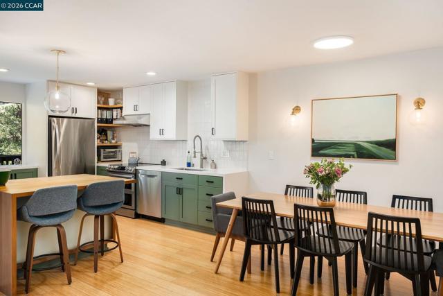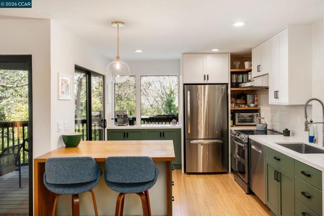 Live in the heart of Lafayette at the top of Dewing! This beautifully remodeled split-level, ground floor condo offers the perfect blend of style, privacy, and walkable convenience. Situated next to downtown dining, shopping, trails, and top-rated schools. Tucked among mature trees and the creek, this home is a peaceful retreat in an unbeatable location. With 1,257 sq ft of light-filled living space, this home lives larger than expected. The open-concept main level features floor-to-ceiling windows, gives treehouse vibes, and offers a seamless flow between the updated kitchen, dining, and living areas. Downstairs, both spacious bedrooms feature remodeled ensuite baths and custom California Closets. Multiple balconies create effortless indoor-outdoor living, while the primary suite includes private storage off the deck. In-unit laundry adds everyday ease. With a 9/10 walk score and downtown Lafayette just outside your door, this is the lifestyle buyers have been waiting for.