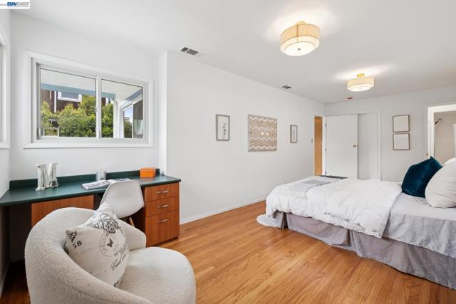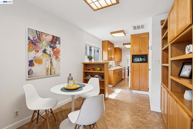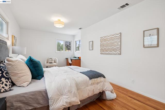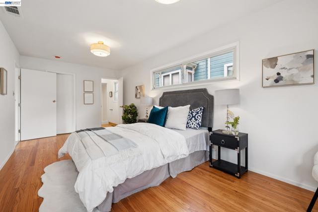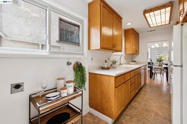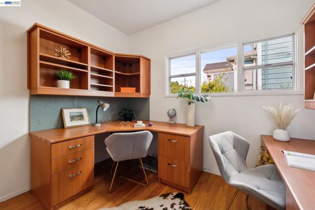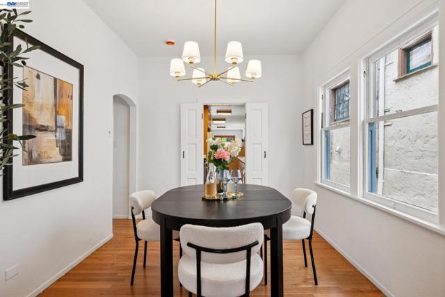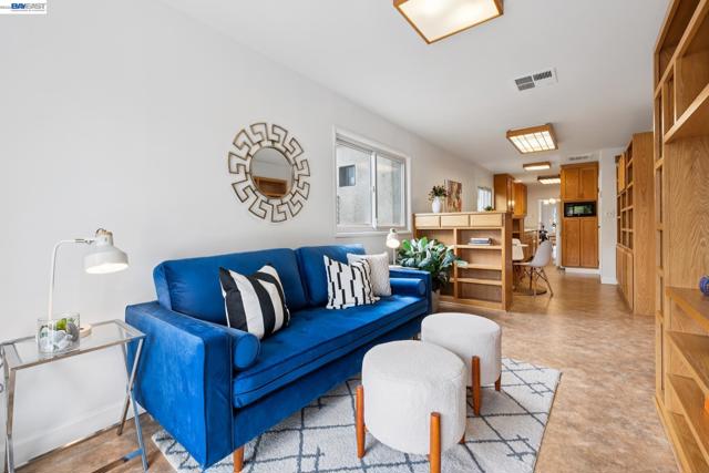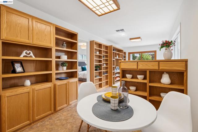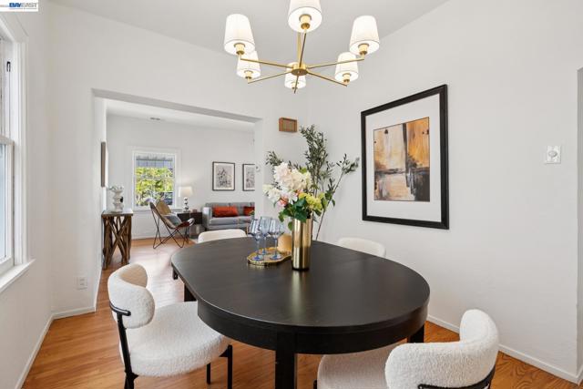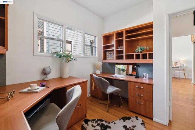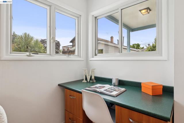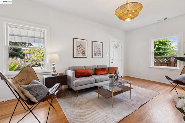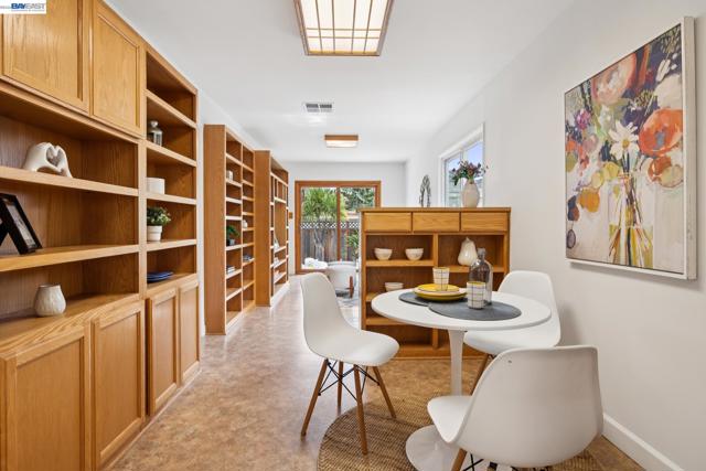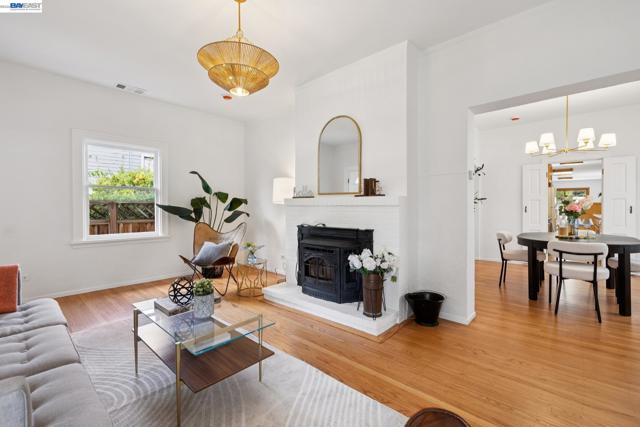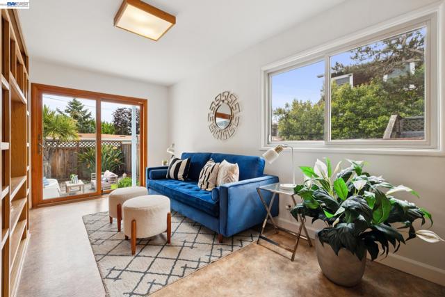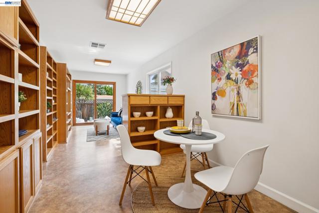 Originally built in 1910 and thoughtfully remodeled time and again, this charming single-level beach house offers three bedrooms, two bathrooms, and 1,413 sq. ft. of living space on a 3,100 sq. ft. lot in Alameda’s highly sought-after East End. Over the years, the home has been extensively upgraded, including improvements to the foundation, roof, electrical, plumbing, and heating systems, along with dual-pane windows. More recent enhancements include air conditioning, fresh interior paint, and custom built-in bookcase shelving, blending modern comfort with timeless character. Upon entering, the inviting living room showcases gleaming wood floors, a working and energy-efficient pellet stove, and a stylish natural fiber chandelier. The adjacent dining room is filled with natural light and highlighted by a modern gold farmhouse chandelier, creating an ideal setting for both everyday living and entertaining. The thoughtfully designed layout includes a refreshed hallway bathroom with shower-over-tub, new tile, vanity, and fixtures. One bedroom is currently configured as a well-organized office with ample storage, while the second bedroom offers generous space and a full closet. The kitchen features warm natural wood cabinetry, Formica countertops, and a gas stove, with convenient laundry hookups nearby. A cozy breakfast nook flows into a versatile family room with abundant shelving, perfect for storage or a media center. Privately situated at the rear of the home, the spacious primary suite includes a large walk-in closet, dedicated desk area, and an en suite bathroom with shower, updated fixtures, and clean, modern finishes. Outside, a private patio backyard offers a low-maintenance outdoor retreat, complete with an additional storage closet. Open Thursday 3p-5p, Sat and Sun from 2p-4p.