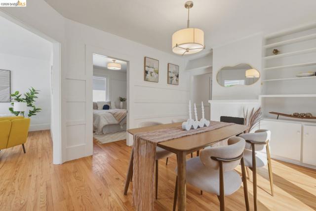 A home with heart, light, and room to do more—this Berkeley Craftsman delivers the kind of space and flexibility that’s hard to find. From the moment you step inside, sunlight, original details, and thoughtful updates create a warm, easy flow. The dining room’s classic built-ins and fireplace anchor the home, while the updated kitchen brings a fresh, functional edge with quartz counters, stainless appliances, and a pantry for extra storage. The layout offers three comfortable bedrooms and a beautifully updated bath, while the main bedroom opens to a deck overlooking a generous yard and garden—your own private outdoor escape. And then there’s the bonus: a detached cottage, a separate studio/office, and over 1,000 sq ft of unfinished basement space ready for whatever comes next—creative studio, workshop, or future ADU potential. All set in one of Berkeley’s most walkable neighborhoods, just minutes to BART, shops, cafes, and UC Berkeley. This isn’t just a home—it’s an opportunity to live, create, and grow. Home Energy Score of 6.