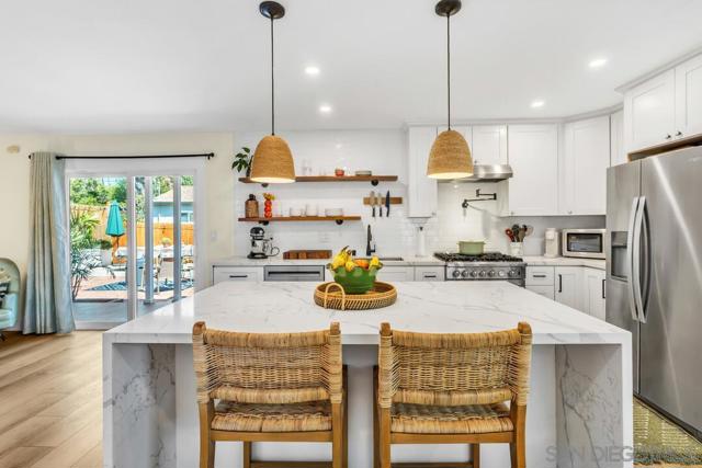 Rewind to the good ole days! Friendly neighbors waving hello as they walk their pups down tree lined streets. Colorful homes exuding vintage charm, each with unique accents. Well manicured lawns full of flowering hedges, bountiful fruit trees, and assortments of succulents. A robust sense of community is felt especially during the neighborhood's yearly street fair and grand Halloween displays summoning all the goblins! Is Rolando Village another name for Pleasantville? Now for the main event: your new home! Encompassing all the neighborhood aspects already mentioned, you will enjoy a fully remodeled home with modern conveniences like central HVAC, a stylish kitchen and baths, and energy-efficient windows, doors and appliances. Too many features to list here! The backyard is your own secret garden with many terraces both for hosting large gatherings and for hiding away with a good book. Most unique feature is the option to keep the current configuration of a 2-bed/1-bath main home plus a mini ADU -OR- replace the interior door that was removed to have an ensuite primary bedroom conveniently situated away from the other 2 bedrooms offering privacy and a quick escape to the garden. From the superb neighborhood, to the countless improvements, the charm, and the versatile uses, this home truly has it all!