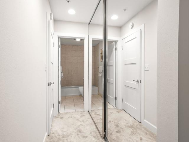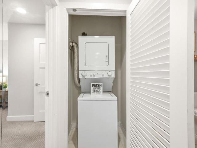 Welcome to 1700 De Anza resort-style living nestled among the trees in San Mateo's coveted Laurelwood neighborhood. This bright and beautifully appointed 2BR/2BA first-floor condo features gorgeous bamboo hardwood floors, a cozy gas fireplace, and an open kitchen with Bosch stainless steel appliances, granite countertops, and a U-line wine cooler. Limestone-appointed bathrooms, an in-unit washer/dryer, and a private patio overlooking a secluded, landscaped slope fully shielded from the street complete this thoughtfully designed home. The prestigious and secure 1700 De Anza complex delivers world-class amenities: sparkling pool, hot tub, fire pits, cabanas, a well-equipped fitness center, and a reservable Hospitality Suite perfect for out-of-town guests all just steps through a stunning lobby. Two deeded parking spaces in the attached garage are included. HOA of $943/month covers water, garbage, exterior maintenance, landscaping, and all common area amenities. Just minutes from Hwys 92, 280 & 101, top-rated schools, Laurelwood & Crystal Springs Shopping Centers, and scenic hiking trails. Keep an eye out for the resident deer and squirrels along the way. A rare opportunity to enjoy elegance, comfort, and true convenience in the heart of the Peninsula.