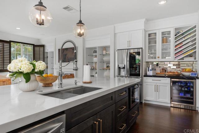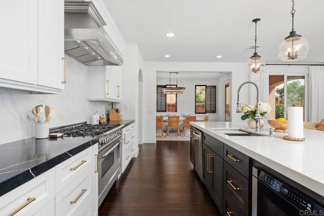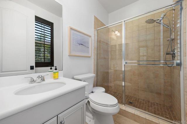 Absolutely stunning home in the highly desirable La Costa Greens community! Situated on an elevated lot with south-facing exposure, this residence offers beautiful views and an abundance of natural light throughout. The sun-drenched backyard patio is perfect for relaxing or entertaining. The open-concept kitchen with an Italian Nostaligie 8 burner range and full butlers pantry, create a seamless, inviting space ideal for modern living. A full downstairs bedroom with full bath adjacent, provides flexibility for guests or multigenerational living. Upstairs features a large Primary Suite with spacious walk-in closet along with Jack-and-Jill bedrooms, an additional guest bath, and a versatile loft—perfect for a home office, playroom, or media space. Located on a rare single-loaded street, this home offers exceptional privacy. Just a short distance to top-rated Poinsettia Elementary and within one of Carlsbad’s premier master-planned communities. Residents enjoy exclusive access to the Presidio Clubhouse featuring resort-style amenities including pool, spa, clubhouse, parks, and scenic walking trails. Close to shopping, dining, beaches, and all that North County has to offer. Priced to sell—don’t miss this opportunity!