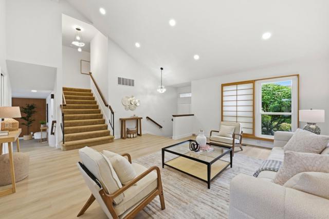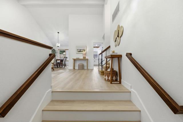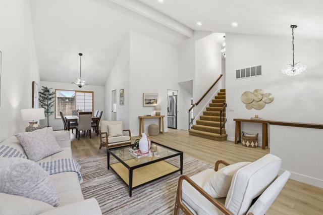Stunning beautiful 4BD/3BA Home in Highly Desirable Washington Square! This move-in-ready gem showcases a bright, open-concept layout with soaring vaulted ceilings and abundant natural light throughout. Enjoy elegant living spaces including a stylish living room and a warm, inviting family room with a cozy fireplace perfectly for relaxing or entertaining. The beautifully updated kitchen features sleek quartz countertops, ample cabinetry, and stainless steel appliances, ideal for modern living. A convenient downstairs bedroom and full bath offer flexibility for guests or multi-generational living. Upstairs, the spacious primary suite boasts a walk-in closet and a tastefully updated en-suite bath with dual sinks. Additional upgrades include double-pane windows, stylish vinyl and carpet flooring, and an energy-efficient solar system. Step outside to beautifully landscaped grounds with multiple outdoor entertaining areas , perfect for gatherings or quiet enjoyment. Turnkey, stylish, and located in one of the most sought-after neighborhoods . This exceptional home is truly a must-see house !