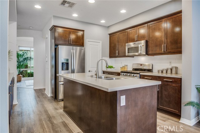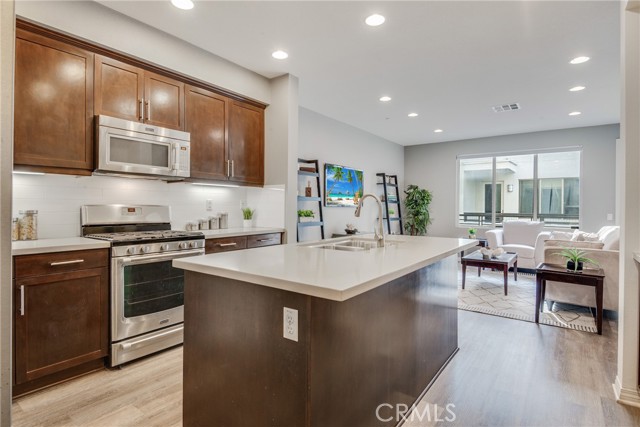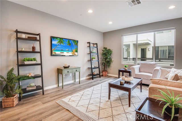 Welcome to the most adaptable floorplan in all of Three Sixty. The open layout not only offers 2 spacious, bright bedrooms but also features 2 den/office flex rooms to perfectly accommodate your needs and lifestyle. We've seen these 2 additional spaces used for everything from a playroom to a home office, a den, and even guest or kid spaces. All of this in the resort-like setting of Three Sixty, with amenities usually found in a luxury resort. 12921 Mission #102 is a turnkey retreat with a versatile floor plan and a quiet location, featuring central air and heat, a spacious balcony, and even a 3-car+ garage. Enter through the beautiful foyer with dramatic curved walls and staircase. The spacious front flex room offers oversized windows and can be used for anything from a formal dining area to an office/den to an additional guest space, and features wide-plank flooring, new paint, and dramatic lighting. Just beyond, you enter the open kitchen with high ceilings, dark cabinetry offering abundant storage, stainless steel appliances, quartz countertops, a pantry, and a spacious kitchen island with countertop seating that will be the center of daily living. The kitchen opens to the south-facing living room, capturing great natural light through picture windows. This beautiful room features high ceilings, recessed lighting, picture windows, wide-plank flooring, custom paint, and direct access to the outdoor patio, ideal for morning coffee and summer BBQs. Head upstairs to two beautiful suites, along with an additional office/den/family room, and the conveniently located laundry. The primary suite features a small balcony ideal for capturing the beach breezes, new carpet, paint, lighting, and ceiling fan, along with TWO walk-in closets, and a beautiful primary bathroom. The additional suite features an oversized window to let in the light and offers a walk-in closet and a luxurious bath with dark cabinetry, quartz counters, a tub/shower, and a separate water closet. Three Sixty offers a true community feel, where it’s hard not to say hi and wave to the neighbors. Amenities are simply incredible, highlighted by the incredible pool deck of the "center", with multiple pools, jacuzzi, luxury cabanas, dramatic firepit, outdoor seating, BBQ areas, numerous luxury lounges, 2 dog parks, playground, grassy parks, basketball and pickleball court, and the state-of-the-art fitness center. The active and diverse residents give this a true neighborhood feel.