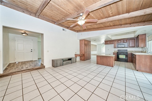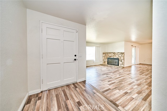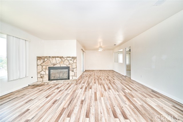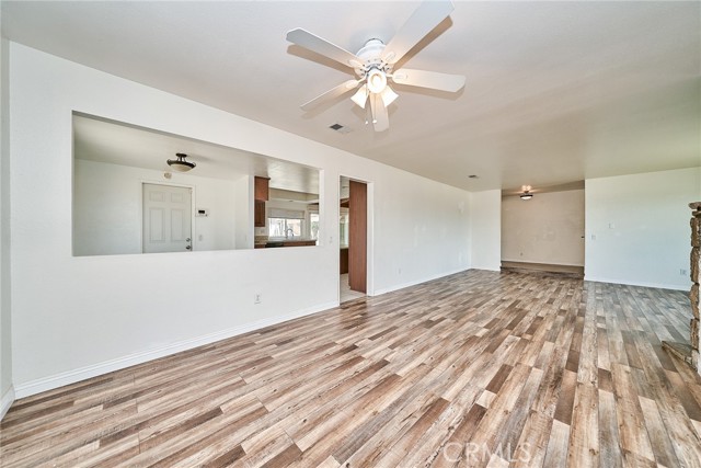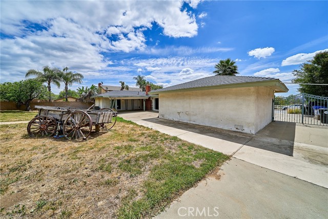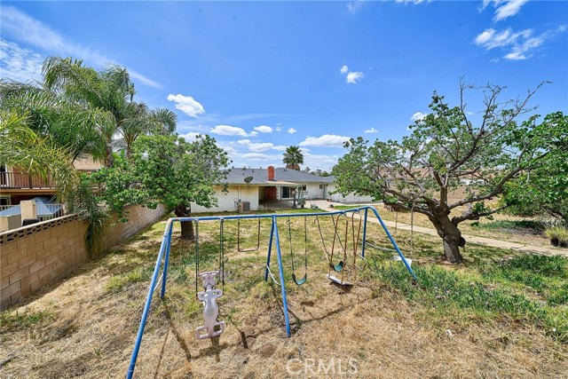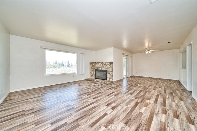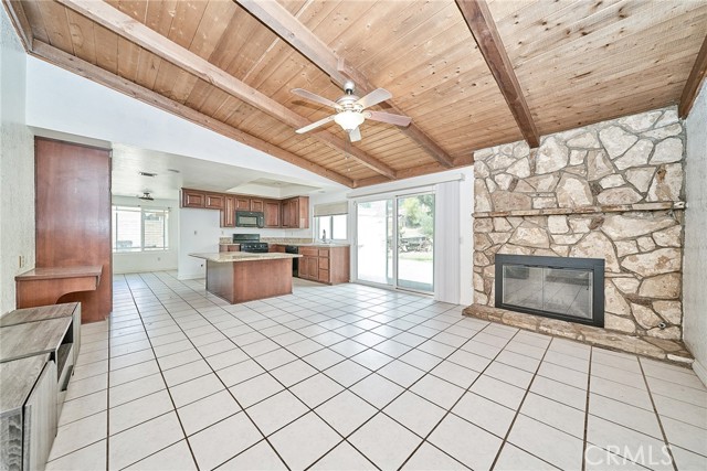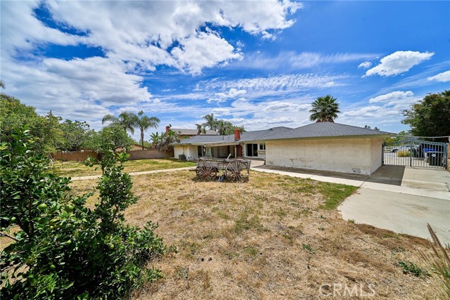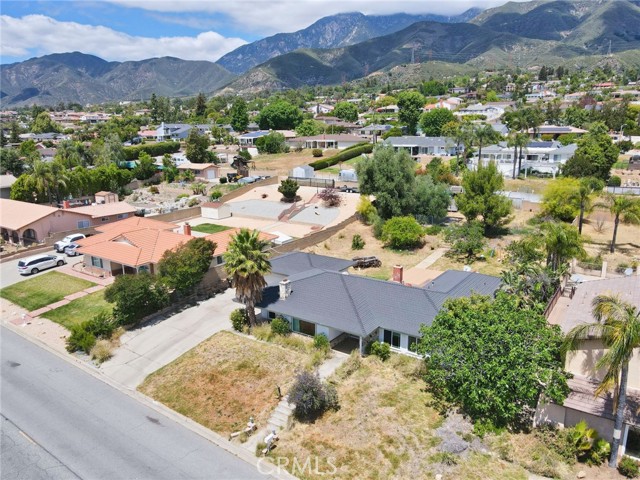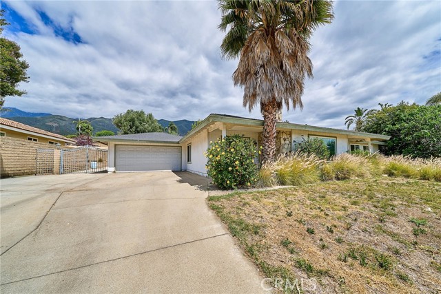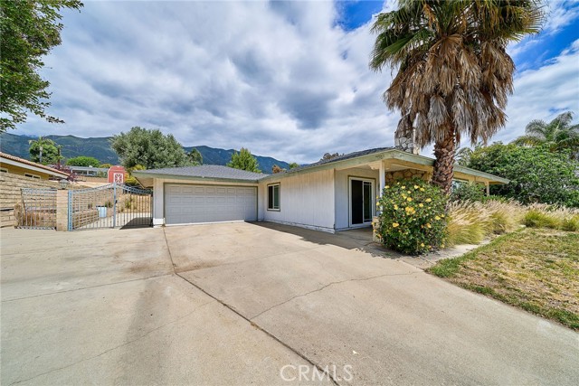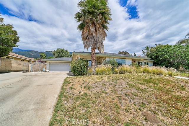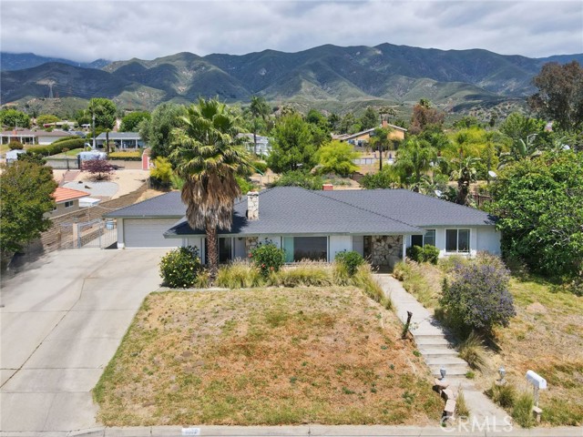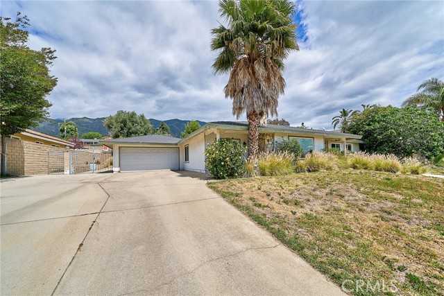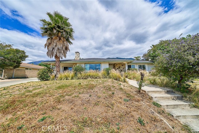 This sprawling single-story ranch-style home in Alta Loma is zoned for horses and offers 2,095 square feet of living space, featuring 4 bedrooms and 2 bathrooms. The entryway and living room showcase gleaming wood flooring, while two cozy fireplaces add warmth and charm to both the living and family rooms. The kitchen features beautiful cabinetry, granite countertops, newer fixtures, and a convenient pantry with pull-out shelves. A separate breakfast area and formal dining room—complete with sliding glass doors to a private front patio—provide multiple spaces for dining and entertaining. All four bedrooms are generously sized with laminate floor. The primary suite includes a ¾ bath, dual closets, and sliding glass doors that open to the covered patio. The full secondary bathroom also offers direct outdoor access, ideal for guests or outdoor use. Step outside to enjoy the covered patio, mountain views, mature fruit trees, and grapevines. The expansive lot offers endless possibilities, including space for a pool, sports court, or additional outdoor amenities. A wide side gate provides easy backyard access and potential for RV parking. Located across from Heritage Park, this home also features attractive stone accents, fresh interior paint, and direct access to a bridle trail at the rear of the property—perfect for equestrian enthusiasts