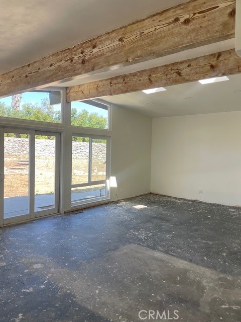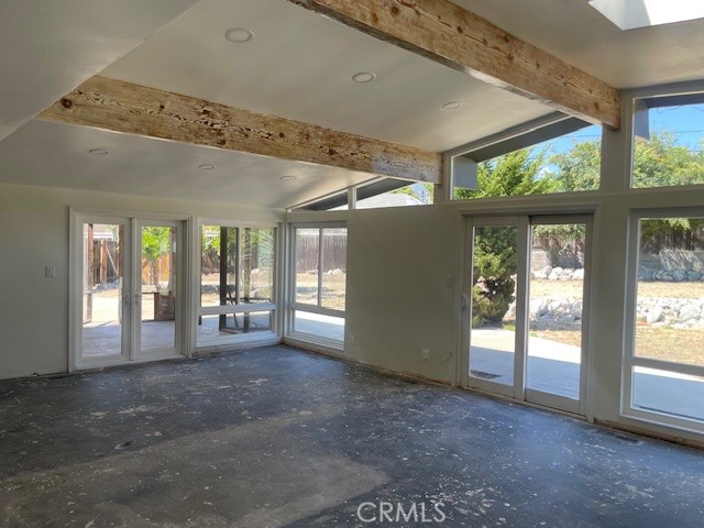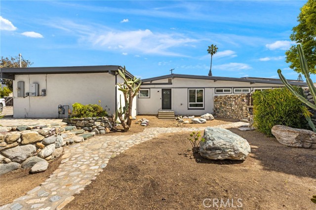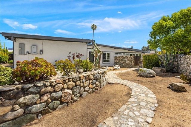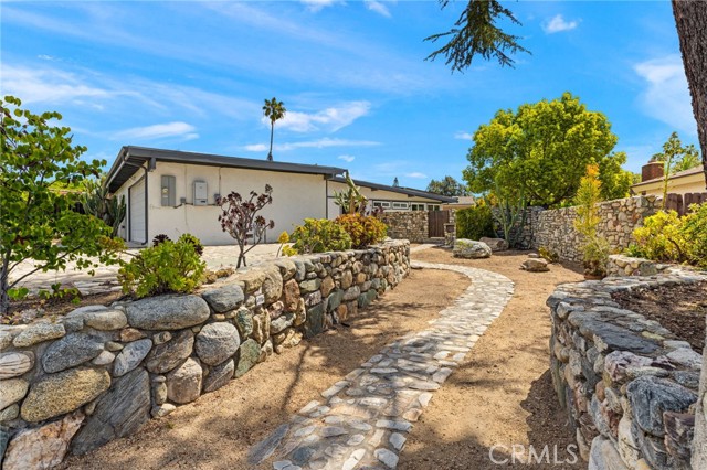 Stunning Contemporary home with Magnificent Ceilings and Beautiful Hand Restored Beams, set on a Very Large Lot. Several outer Structures complete this truly unique property. Sunlight fills the rooms of this home and creates a warm and inviting atmosphere. New Electrical wiring, LED & Recessed lighting, NEST Heat & Air, new ducts, Newer Roof, 3.5 KW Solar panels all paid no lease, windows, New beautiful, remodeled bathrooms. Skylights in many rooms. The property invites imagination, a canvas ready for floorings, paint etc. It is a tranquil sanctuary surrounded by nature. Amazing rock walls and rock features that surround the property. Two car garage that could possibly accommodate 3 cars or a large workshop. Space is there and ready for a dream kitchen. So many windows and views from all into private outdoor spaces. Two outside structures, one another workshop or storage. The other could be possibly completed as a ADU or extra office. Many Fruit trees, Pomegranate, Lemon, Grapefruit and Prickly Pear. Very close to Elementary school and Claremont Colleges. So many possibilities!