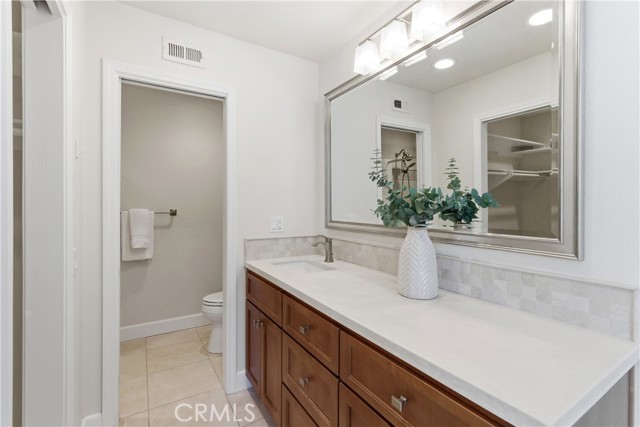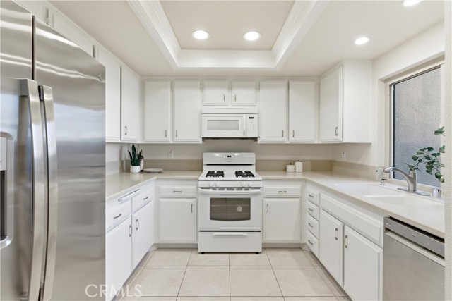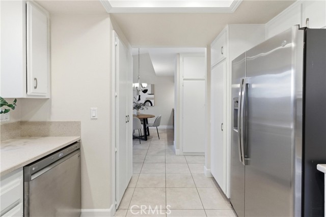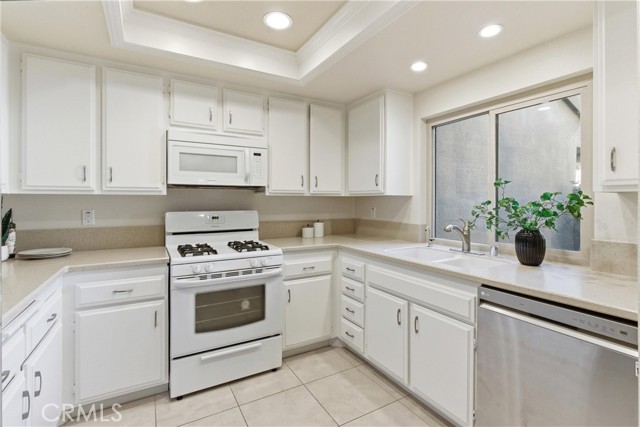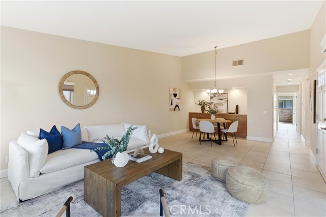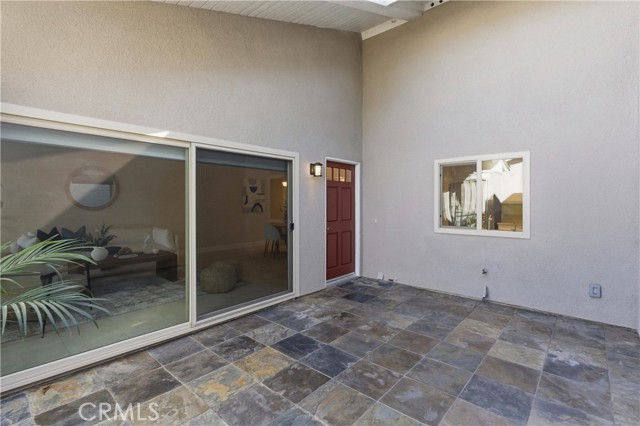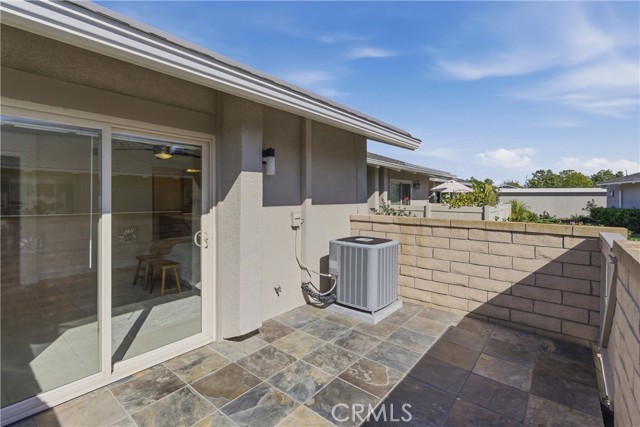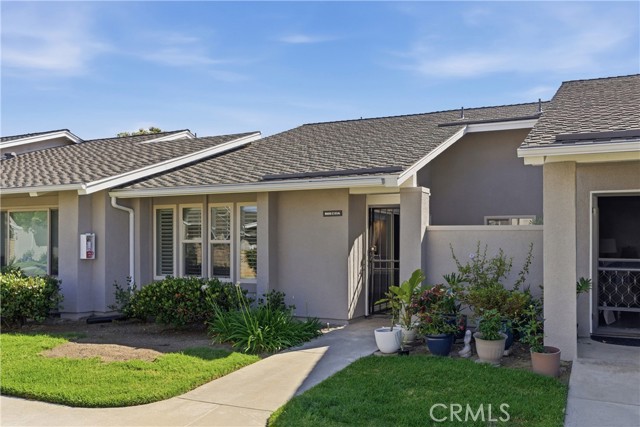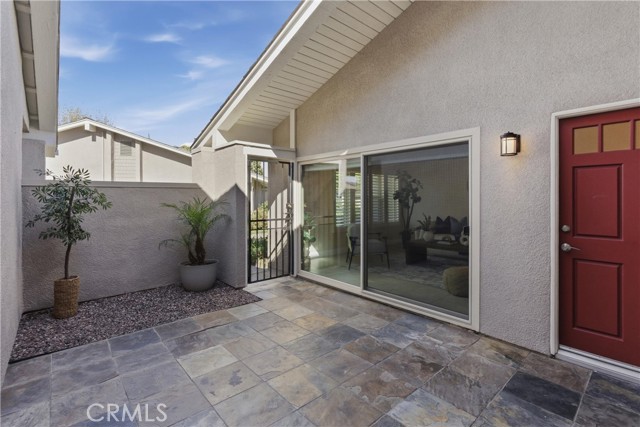 Beautifully upgraded Marina model in a quiet location close to parking. You get a sense of calm as you walk into the light filled patio where your green thumb can thrive in the lush garden. Slate flooring elevates the space ready for you to sit and sip your morning coffee. The spacious living room offers gleaming tile floors, vaulted ceilings and a large slider leading to the patio. Custom built-in buffet in the dining room is great for all your holiday dishes. Bright kitchen over looks the patio and has white cabinets, gas range, microwave and dishwasher. Remodeled bathrooms have custom vanities and upgraded tile. The primary bathroom has double sinks, and a separate shower area. A second slate patio is just through the slider. Scraped ceiling, recessed lighting and inside laundry make this a great place to spend your golden years. Huntington Landmark is a guard gated senior community offering state of the art facilities with open greenbelts and park areas great for walks or your pets, crystal blue Olympic swimming pools, spa, tennis courts and for you golfers your very own putting green, shuffle board, gym and weight room, wood working, ceramics, library, billiard room, RV storage and much more!!