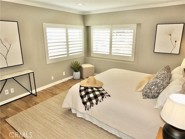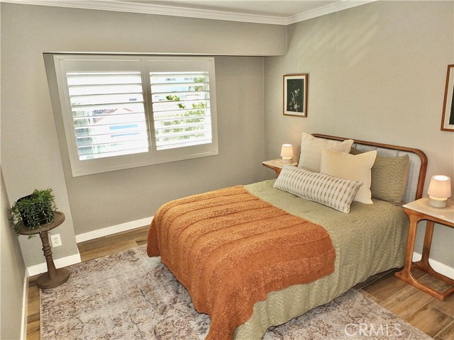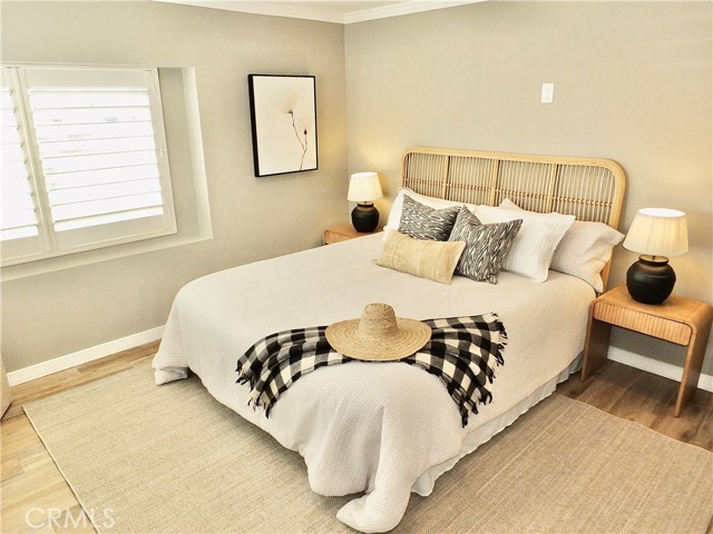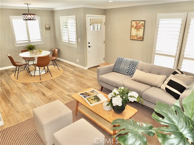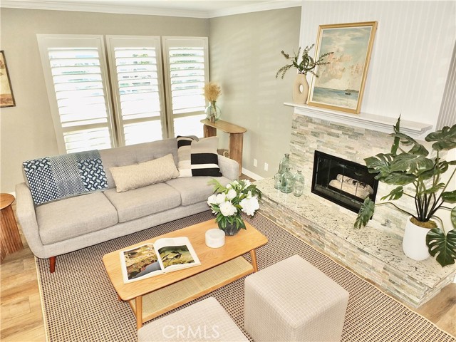 36 Corona Avenue… a stunning and sophisticated 2 bedroom, 2 bathroom rare townhome-style unit only 3 doors from the beach and Ocean in the Heart of Belmont Shore with its great shops and restaurants, plus its own ocean views… A large party patio/ reception court features a glass entry gate, a table plus an umbrella where you can watch the boats sail by. Beautifully renovated, the living and dining rooms are dramatized by crown molding, ceiling lights, built-in cabinetry, custom shutters, exquisite flooring, plus a classic stone fireplace with gas logs. The renovated kitchen is nicely appointed with an adjacent in-unit laundry plus access to the side walkway leading to the tandem 2 car garage with storage. Ascend the stairs to the illuminated library/ study level… then up to the renovated guest bathroom, charming 2nd bedroom plus the Ocean View primary suite boasting 2 mirrored wardrobe closets and an amazing skylit private bathroom. Crown molding and plank flooring throughout. Escape from it all amidst the lovely ocean breezes, waterfront activities and vibrant nightlife of Belmont Shore. Truly beach community living at its best!!!