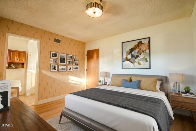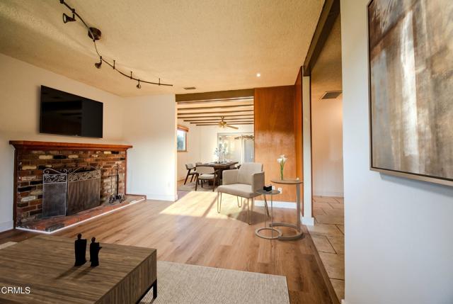For over 40 years, this cherished corner home has been the heart of a family's story--filled with laughter, celebrations, and everyday moments that turned into lifelong memories. Now, it's ready for its next chapter.This refreshed traditional home offers 4 spacious bedrooms and 2 full baths across 1,570 sq ft of living space, all set on a generous 7,658 sq ft lot--with exciting potential for an ADU or future expansion.Step inside and feel the warmth immediately. A wood-burning fireplace anchors the living room, creating a cozy, inviting space perfect for quiet evenings or gathering with loved ones. Fresh interior paint and beautiful wood-like luxury vinyl flooring give the home a clean, updated feel while still leaving room for your personal touch.The primary suite offers privacy and comfort with its own en-suite bath. A versatile middle bedroom opens directly to the backyard--ideal for a home office, guest room, or indoor-outdoor retreat. Two additional bedrooms are generously sized, offering flexibility for family, hobbies, or work-from-home needs.The dining area is designed for connection--perfect for hosting holidays, celebrations, or casual dinners--with direct access to the backyard covered patio. Just steps away, the charming country-style kitchen features ample functionality, complete with double ovens, a cooktop, and included appliances, plus its own access to the garden--making everyday living and entertaining effortless.Step outside and discover a backyard that feels like a hidden retreat. Thoughtfully landscaped, it features a covered patio, soothing fountain, fruit-bearing trees, and whimsical touches throughout--creating a peaceful space to unwind, entertain, or simply enjoy nature.Additional highlights include: Newer central heating & air, double-pane windows, attached 2-car garage, fresh interior paint throughout and newly installed wood-like luxury vinyl flooring.Location adds even more value--just moments from everyday conveniences like Food 4 Less, Seafood City, and Starbucks, just to name a few, with easy access to the 210, 405, 5, and 118 freeways.Yes, there are areas ready for your vision--but that's where the opportunity lies. This home has strong, solid bones, a beautiful lot, and endless potential to become something truly special and stunning for your family to enjoy! Please note: SALE IS AS IS. NO repairs will be done by the Seller. The photos and decors used in the interior photos have been VIRTUALLY STAGED.