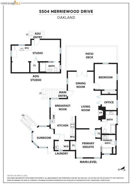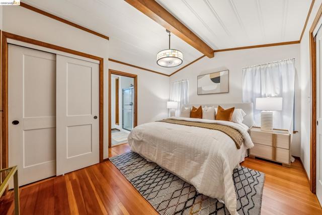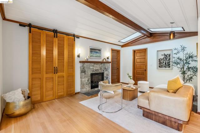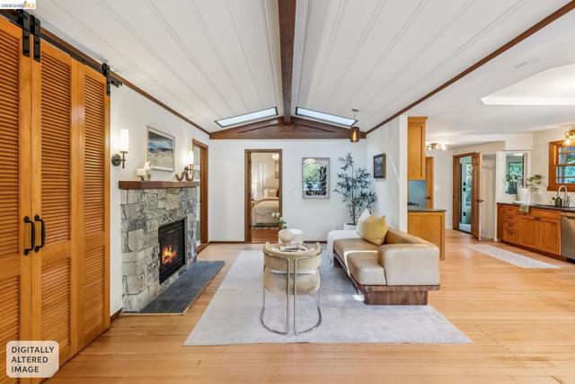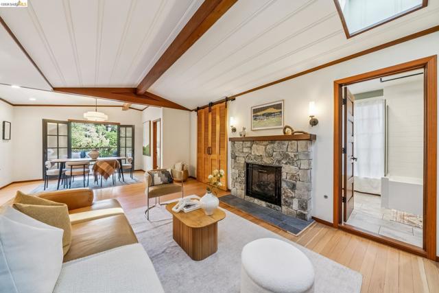 Serenity NOW. Welcome to this very special Montclair village adjacent 3 bed 3 bath home with a fully permitted ADU. Wood floors throughout, banks of windows surround all the living areas, washing the interior in natural light. Vaulted ceiling in the living, dining area and primary. Living room has a handsome gas fireplace and skylights. Spacious eat in kitchen with large corner windows. Primary bedroom has its own attractive ensuite bath and tongue and groove ceiling. Additional bedroom is well-sized. French doors open onto a large southeast facing with wooded views - the deck is ideal for alfresco dining and quality lounging - the perfect place to experience nature. Off the kitchen is an enclosed sunroom that may be the best place ever to relax, play music, or read a book. Door off the sunroom accesses one of the patio areas. The second bath is large in size with a shower over tub, a separate office space with a south facing window is located off living room. A laundry room is found at the rear of the house. The detached ADU is the perfect getaway – updated kitchen, sleeping area, full bath and large closet. And there is a private outside patio. A separate on demand hot water unit makes this ADU awesome indeed. The well maintained outdoor area features a designated lawn, a raised bed garden section, and a distinct seating patio. Under the breezeway you can enter into a well-sized basement plus another storage area. The detached garage at street level has newer electrical for slow-drip car charging. Thornhill Elementary School, Montclair Elementary School, Montclair Public Library and ALL the options of the Village are nearby.