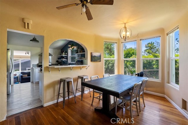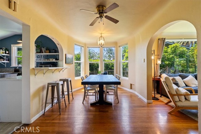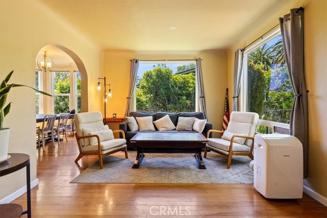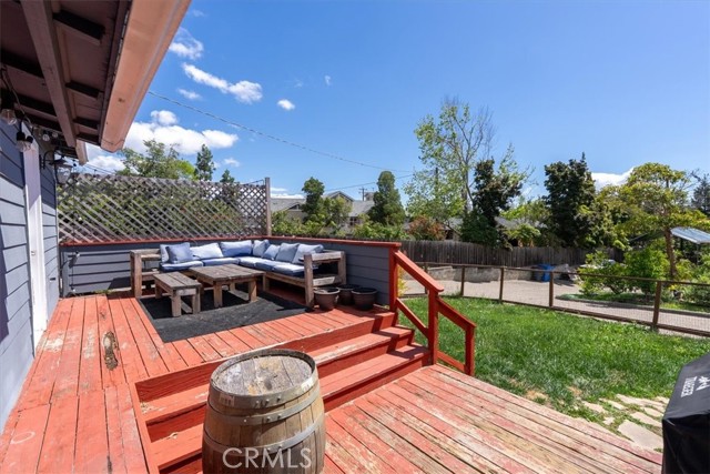 Originally owned by the prominent Johnson family of San Luis Obispo, this 1922 residence perfectly balances vintage character with an incredible location. Spanning 1,547 sq ft, the interior features three bedrooms, two bathrooms, and a layout defined by timeless architectural details. The light-filled living room boasts a wood-burning fireplace and classic arched transitions leading to a formal dining room and a versatile bonus space. Situated on an expansive parcel, the property offers generous front and rear yards, a detached drywalled garage, and ample on-site parking. Whether you are hosting on the back deck or adding your personal touch to the interior, this home is a rare opportunity to own a piece of local history.