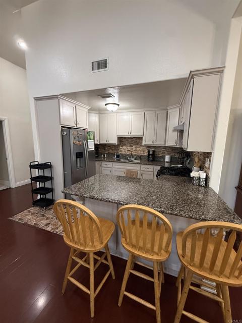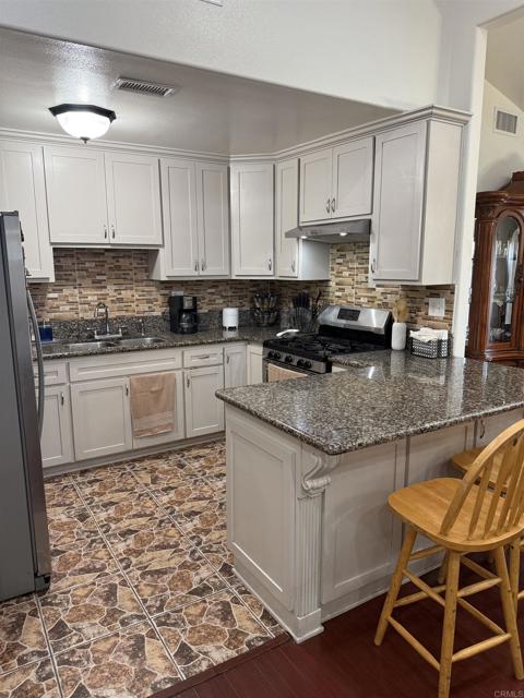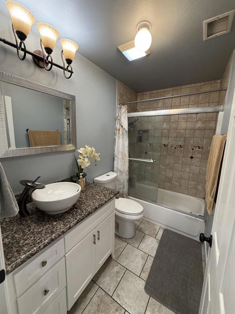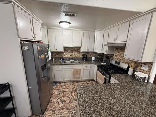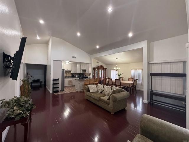 Large one story house in well established neighborhood, vaulted ceilings, recessed lights, ceiling fans, remodeled kitchen with granite counter tops, laminate flooring all throughout, ceramic tile flooring in bathrooms, garage was converted to a two bedroom junior suite , large lot, concrete back patio with space to park multiple cars, front lawn, privacy front fence, fruit trees, great location close to all services, shopping and freeway access, buyers and buyer's agent to verify all information before close of escrow