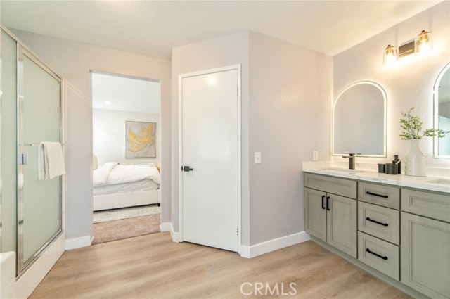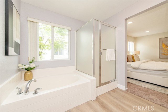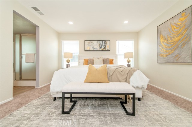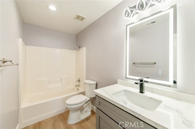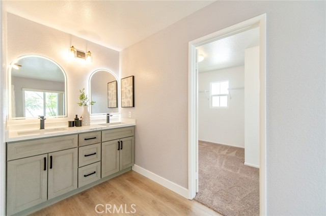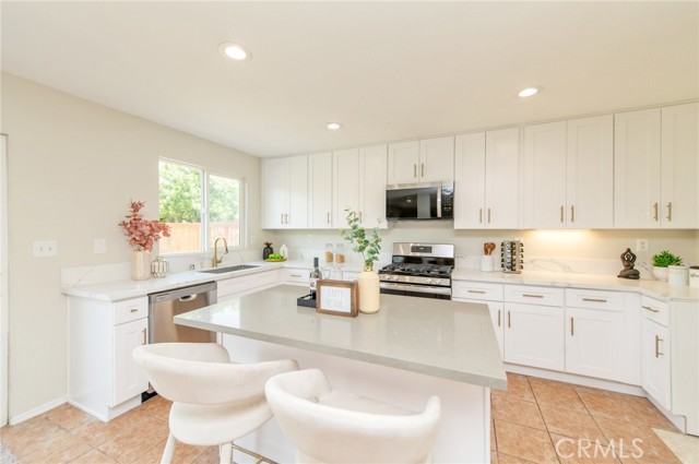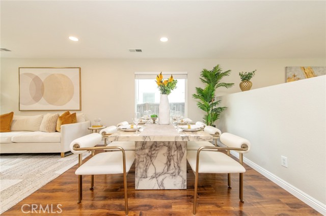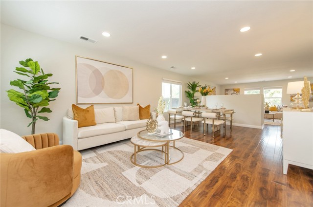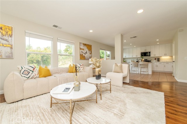 Welcome to this beautifully upgraded 4- bedrooms, 3-bathrooms home(including 1 bedroom and 1 bathroom downstairs) and located in one of the best areas of Rancho Cucamonga, within the highly rated Etiwanda School District. Upon entering, you are greeted by spacious open layout featuring the living room, dining room, and family room with a cozy fireplace, all enhanced by rich espresso-toned flooring. The kitchen showcases exquisite new cabinetry, a stylish center island, quartz countertops, high-end stainless- steel appliances, a new drop-in kitchen sink with satin gold brass pull handles and faucet, all LED recessed lighting throughout. Downstairs features one bedroom which can be used as a work-from-home office. Upstairs offers 3 bedrooms, a laundry room and an open loft, including a primary suite features with well appoint bathroom offers dual vanities, a large ensuite bath with a soaking tub, a separate shower and walk-in closet. All bathrooms enhances the bathroom's upscale design including a sophisticated UL CERTIFIED LED anti-fog mirrors and a sleek and modern vanities. The highlights of this home include new upstairs carpeting, dual-pane windows, freshly painted interior, newer A/C system and water heather. This home is conveniently located with easy access to major freeway and is close to shopping center, restaurants, Victoria Gardens, and Ontario Mills. It offers an exceptional living environment, high-rated schools, and the opportunity to fully enjoy the California lifestyle.