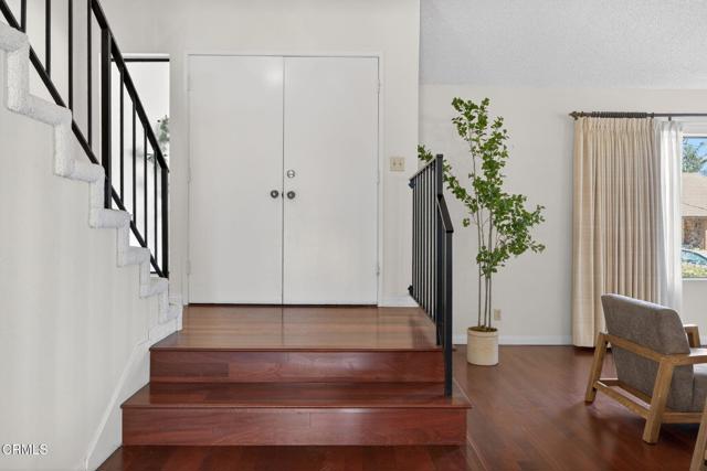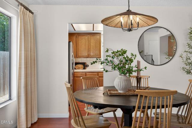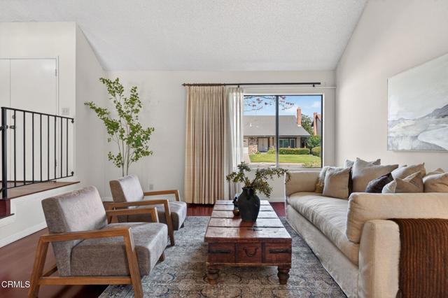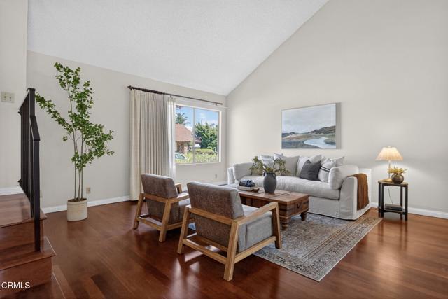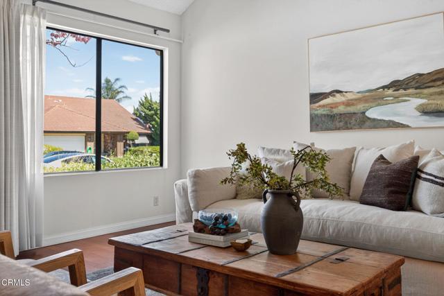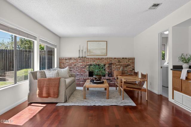 Come for the House. Stay for the Backyard... and the Way Life Feels Here. Step inside and this 4 bedroom, 2.5 bath home unfolds with a sense of openness and scale. The living and dining areas flow together beautifully, ideal for movie & game nights, celebrations, or simply enjoying the light that pours in throughout the day. Beautiful wood floors bring warmth to the lower level, while the layout feels both functional and welcoming.The kitchen is spacious, filled with sunshine, and offers a timeless feel with its wood cabinetry and upgraded appliances--comfortable as-is, with plenty of room to reimagine over time. Just beyond, the family room makes a statement: a dramatic, full-wall brick fireplace creates a cozy focal point for evenings at home. Sliding doors open to a backyard with a lush lawn and skyline of trees.Spacious, private, and park-like, this nearly 7,000 sq ft lot offers room to breathe. Behind the property, a walking and biking path quietly weaves through the neighborhood--perfect for morning coffee strolls with the dog, sunset walks, or an easy ride that connects you to Ventura's wider trail network.Upstairs, four generously sized bedrooms provide flexibility and comfort. The primary suite is especially spacious, complete with classic plantation shutters and an ensuite bath. A hallway bathroom serves the additional 3 bedrooms, while a convenient half bath is located downstairs.With approximately 2,334 sq ft of living space, air conditioning for those warm Ventura days, and a two-car garage, the home checks all the boxes--while still leaving room to make it your own.Beyond the front door, Ventura unfolds in every direction. Ideally positioned near Petit Park, Citrus Glen Elementary and neighborhood shops, with everyday conveniences just minutes away. Enjoy the Ventura Aquatic Center, Ventura's beaches and to the trailheads of Harmon Canyon Preserve--offering miles of hiking with sweeping viewsLoved and cared for by one family for decades, this is a home that offers space, light, and a connection to nature. A place to spread out, settle in, and enjoy the rhythm of Ventura living.