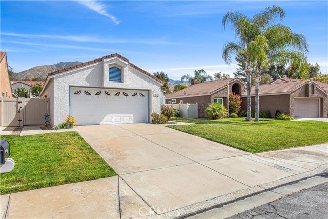 Welcome home. Nestled in the desirable East Highlands Ranch community, well maintained 3 bedroom, 2 bathroom home offers comfort, style, and convenience. Inside is a spacious living and dining area, with a fireplace, perfect for entertaining. The kitchen features modern appliances, granite counters, and a cozy breakfast nook. Outside is a beautifully landscaped backyard with a covered patio, well maintained lawn, fruit bearing trees, retaining wall, planters, wrought iron and vinyl fencing throughout —perfect for relaxing or hosting weekend barbecues. The 2-car garage features built- in cabinetries and a sink by the laundry area. Interior features include high ceiling in living room, tile flooring in key areas, granite counters in kitchen and bathrooms, renovated primary bathroom/shower, energy efficient sliding doors, ceiling fan, and mirrored closet doors. This home has easy access to East Highland Ranch amenities: pools, hiking/ walking trails, lake, picnic areas, sports courts and more. Conveniently near top-rated schools, shopping, dining and freeway access. Come and take this opportunity to make this lovely house your new home.